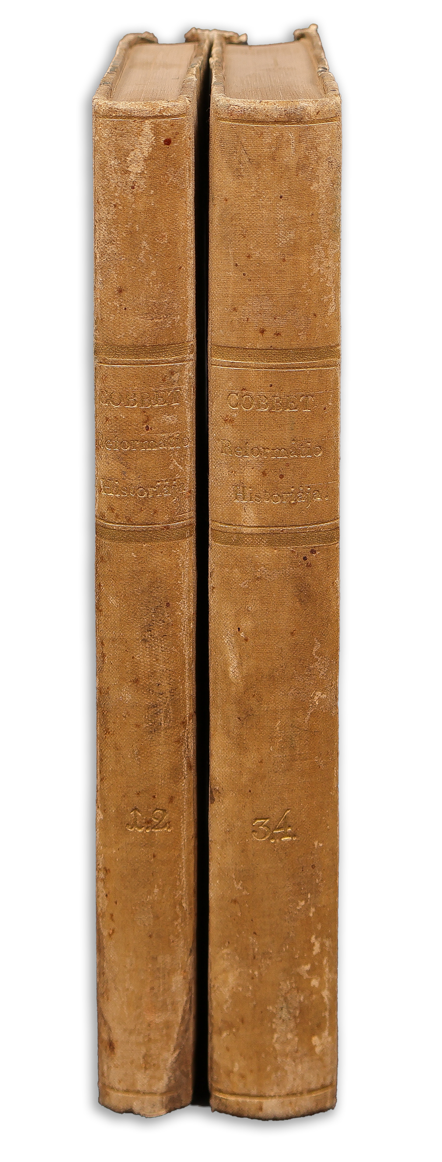 The History of the Protestant Reformation in England and Ireland. Two volumes in contemporary half-cloth binding with gilt lettering. The pages are slightly rust-stained.