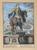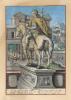 Plate 2: equestrian statue of Augustus, holding a globe and seen from behind, with a feast occurring at left in the background.