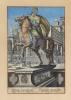 Plate 9: equestrian statue of Vitellius, seen three-quarters to the left, with his death scene in the background at right, his body being thrown into the Tiber at upper right.