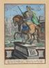 Plate 8: equestrian statue of Otho, seen from behind, his death scene in the background with him stabbing himself at right and the burning of his body at left.