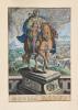 Plate 1: equestrian statue of Iulius Caesar, seen from the front, with a scene of a naval battle on pedestal below.