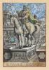 Plate 10: equestrian statue of Vespasian, seen from behind, three birds at upper right with one attacking another.