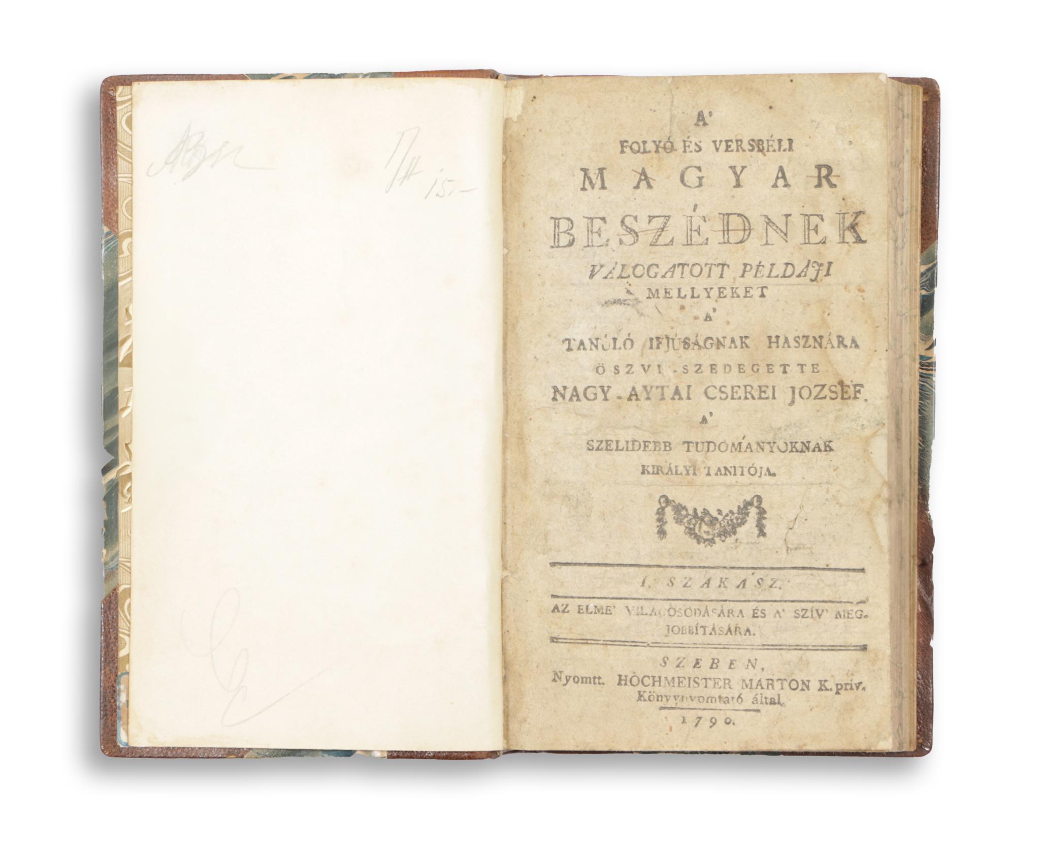 Work of the Jesuit József Cserey (1754-1809) containing aphorisms, animal tales, stories from ancient and Hungarian history, descriptions of plants and animals, and, in the second part, quotations from Young, Gessner, and ancient classics.