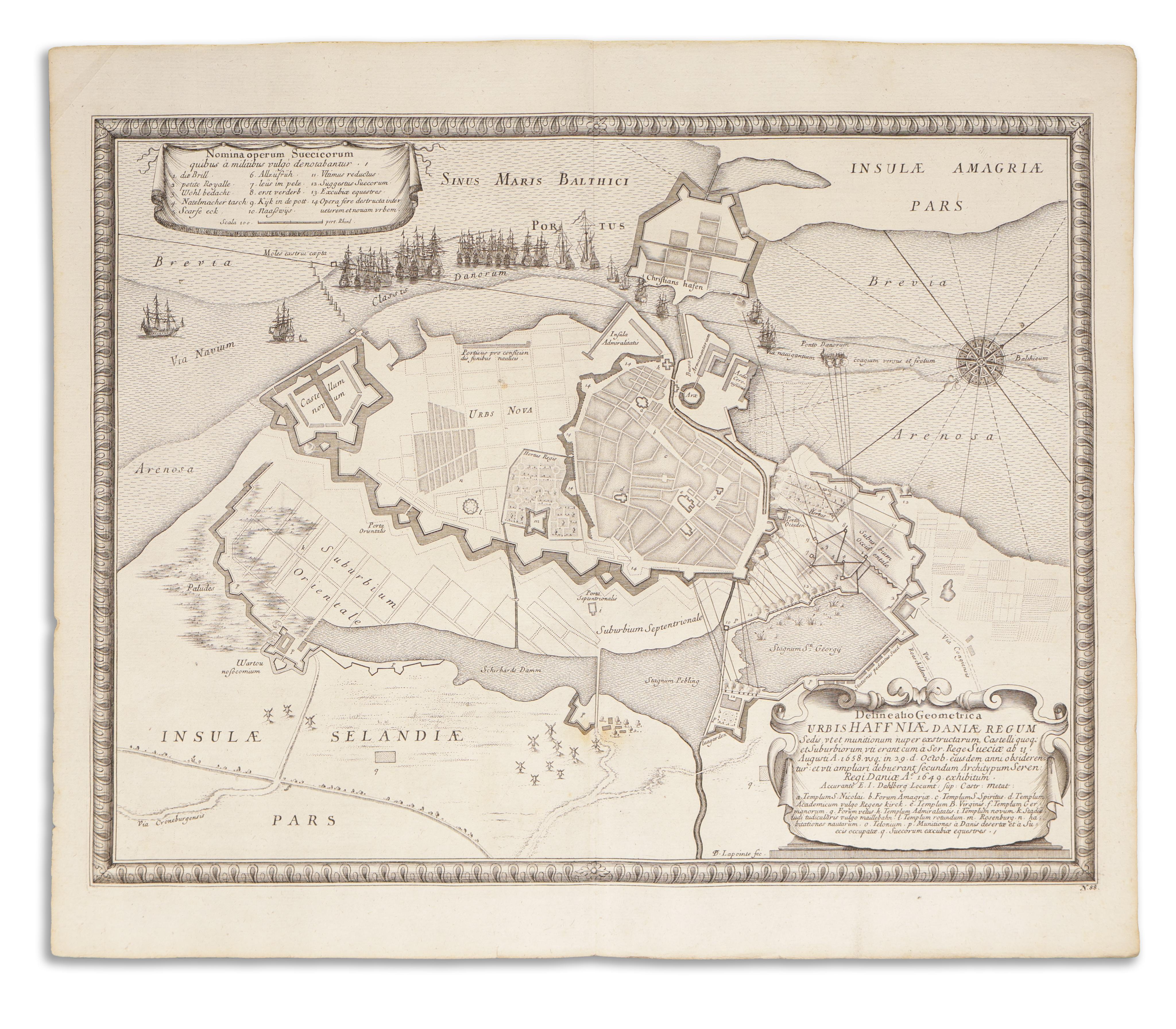 Delineatio geometrica urbis Haffniæ Daniæ regum sedis, ut et munitionum nuper exstructarum, castelli quoq. et suburbiorum, uti erant cum a Ser. Rege Sueciæ ab 11 Augusti A. 1658 usq. in 29 d. Octob. eiusdem anni obsiderentur: et uti ampliari debuerant secundum architypum seren. Regi Daniæ Ao. 1649 exhibitum. [1696], [Nuremberg], [Sumptibus Christophori Riegelij]. Cartographer: Dahlbergh, Erik Jönsson. D. Lapointe is probably F.D. Lépine, french engraver specialising in fortifications.