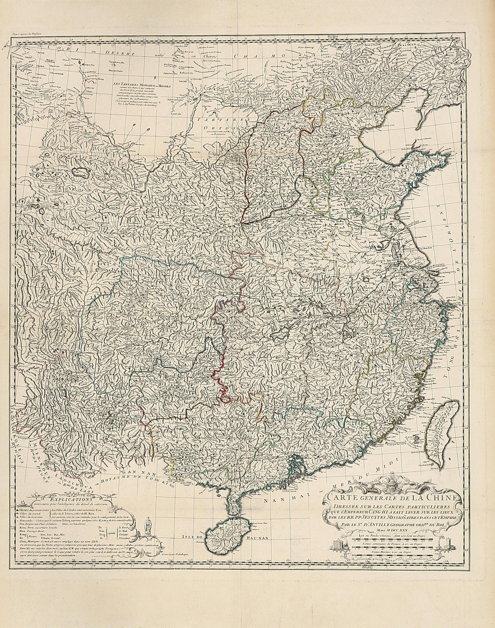 D'Anville atlasza a korszak legjelentősebb térképészeti tekintélye volt Kínáról, amely a jezsuita misszionáriusok által Kangxi császár felkérésére 1708 és 1716 között készített térképeken alapult. E felmérések egy példányát Párizsba küldték, ahol D'Anville királyi kartográfust bízták meg e térkép – Kína első viszonylag pontos ábrázolásának – elkészítésével.