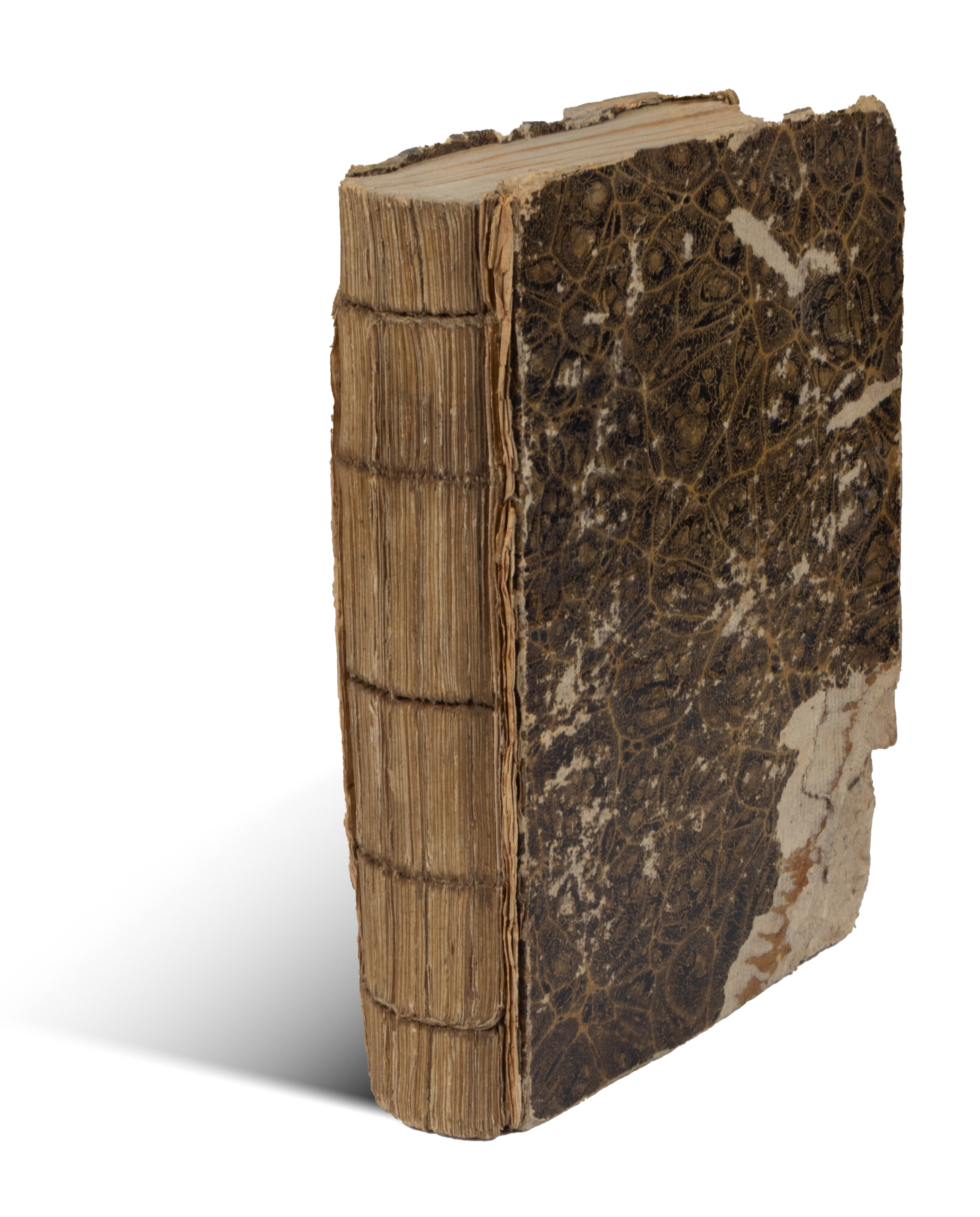 In einem stark beschädigten zeitgenössischen Kartoneinband. Der Buchrücken fehlt. Die Bindung ist an mehreren Stellen schwach. Die Gravuren und Blätter sind fleckig und vergilbt. Trotz dieser Mängel ist es ein spannendes Werk zur zeitgenössischen Modegeschichte.