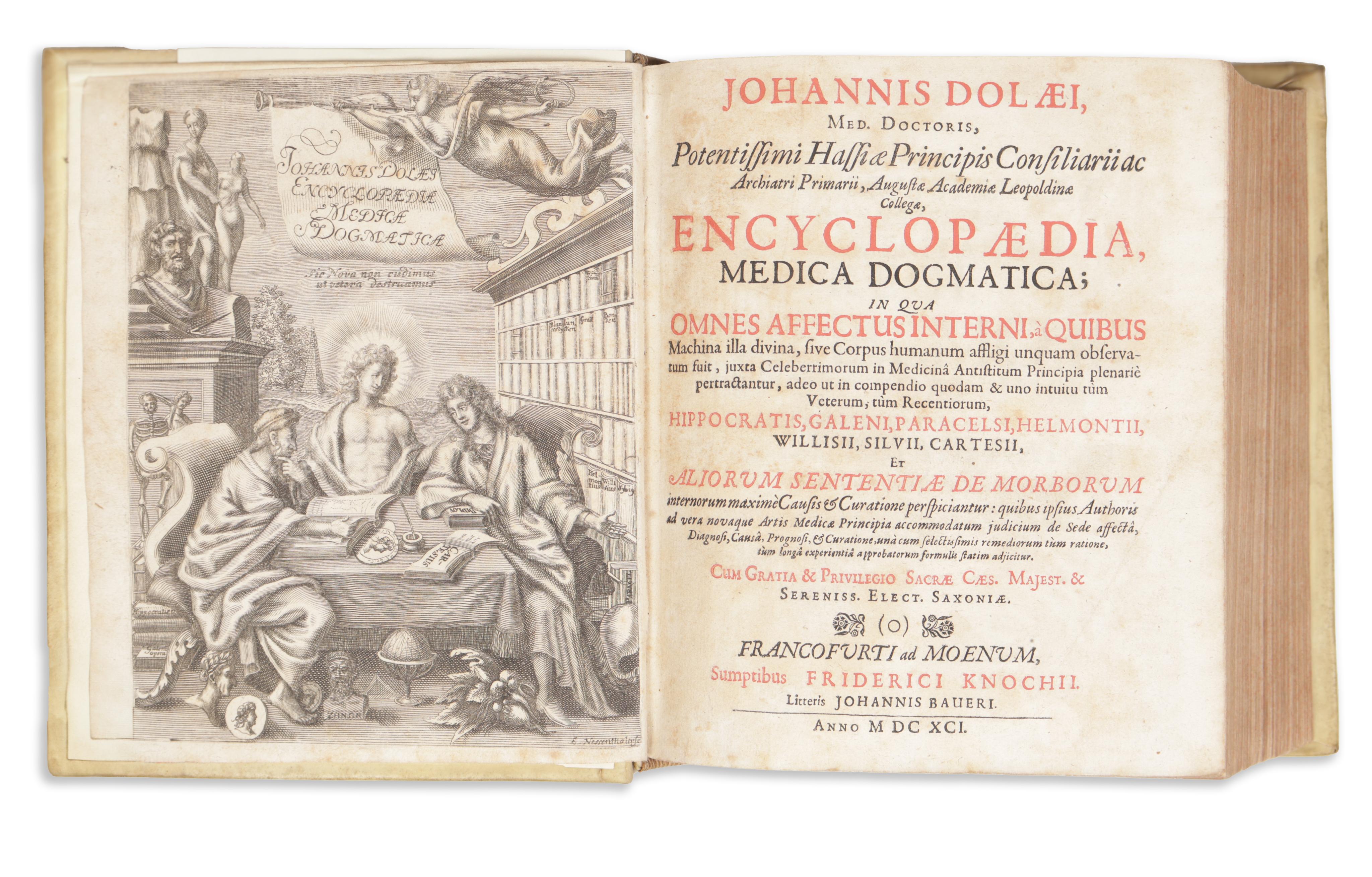 The monumental work by German physician Johann Doläus (1651-1707) lists and compares the doctrines of famous doctors from antiquity to his own time.