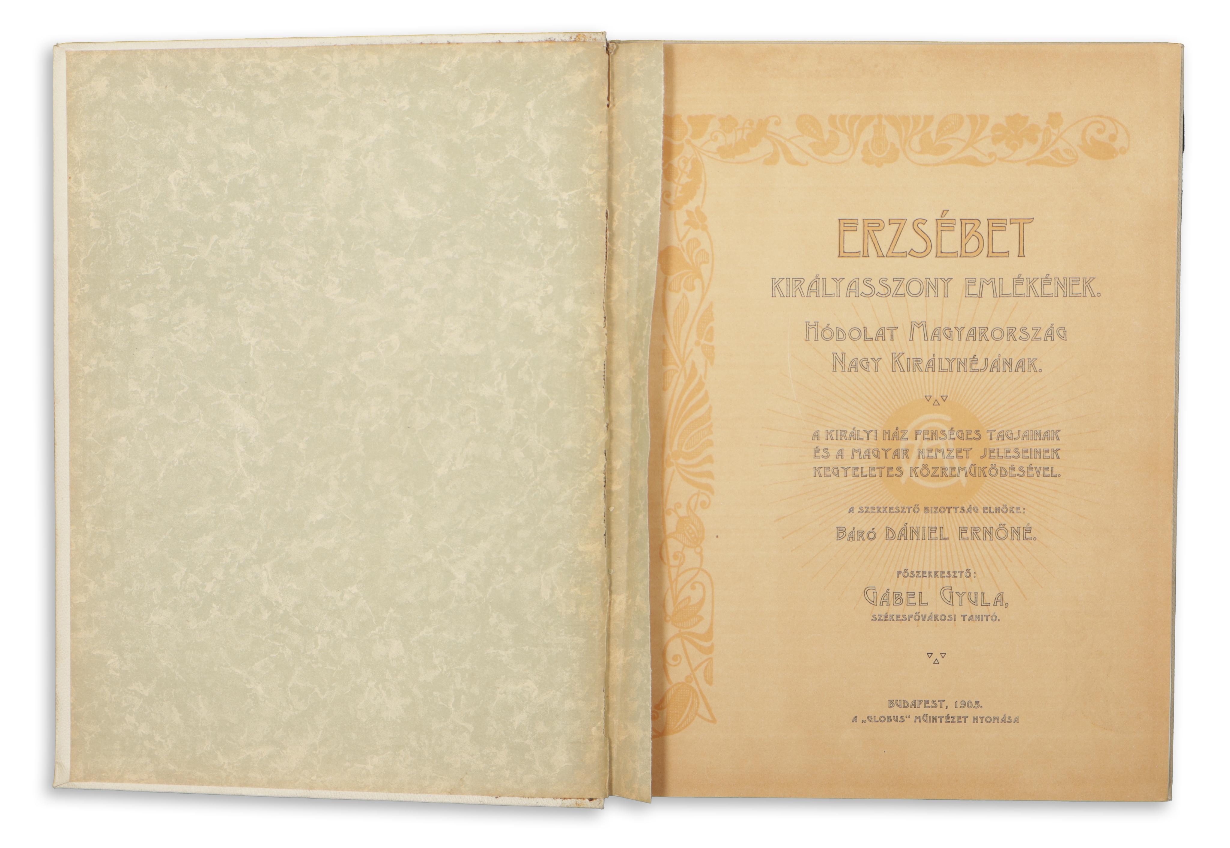 In memory of Queen Elizabeth. Homage to the great Queen of Hungary. Profusely illustrated, with framed ornamental plates, numerous facsimile letters and signatures. Publisher's decorative painted full cloth binding.