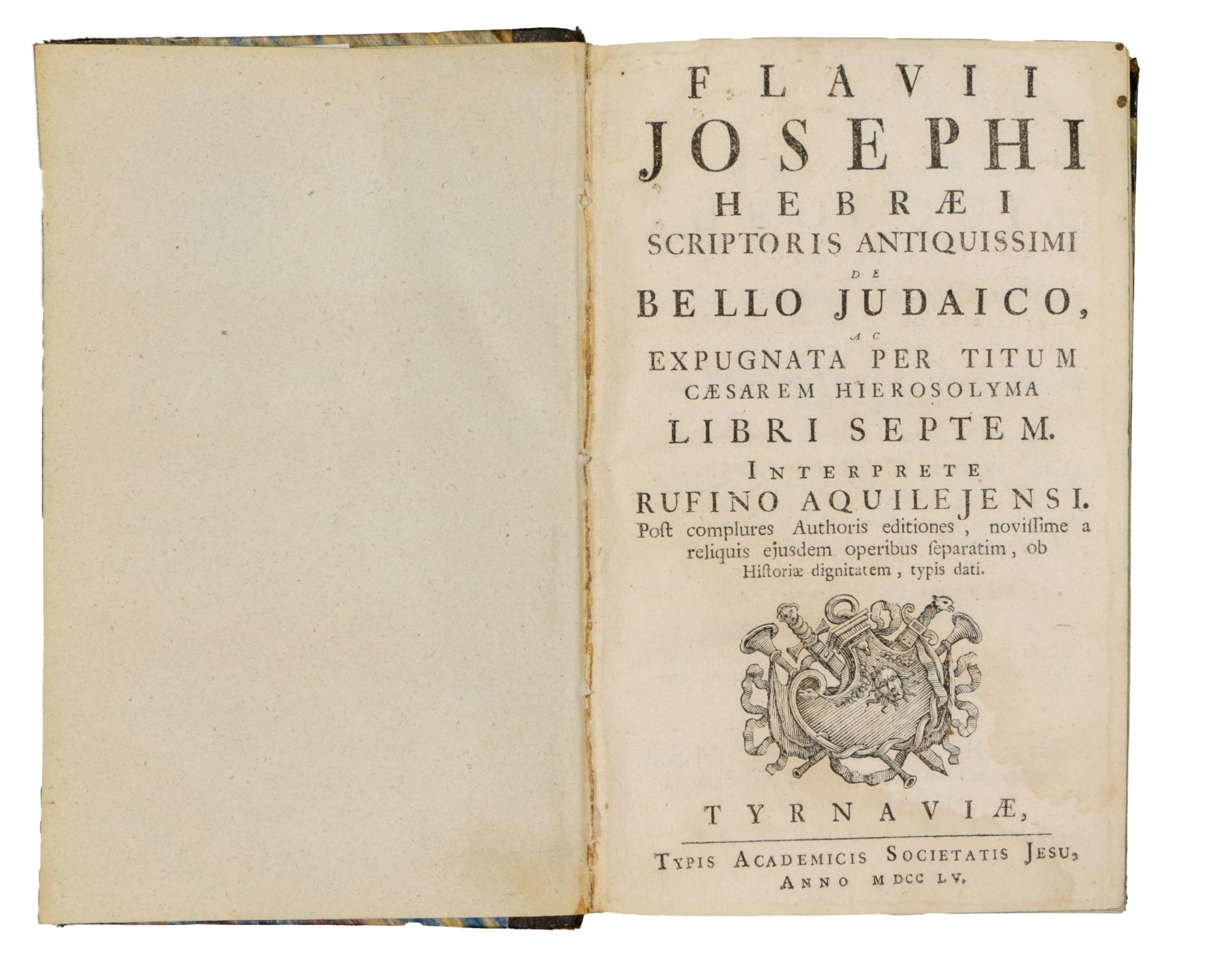 Flavii Josephi Hebraei scriptoris antiquissimi de bello judaico, ac expugnata per Titum caesarem Hierosolyma libri septem. Interprete Rufino Aquilejensi.