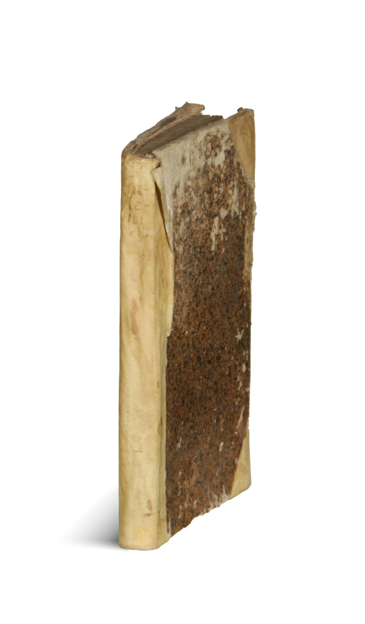 Appropriate condition for its age, in a later half-vellum binding with inscribed spine, lightly damaged at top. Occasional signs of water stains and worm holes at the margins. Marginal notes and undernotations in ink. Autograph lines in ink at the bottom of the title page, in Latin.