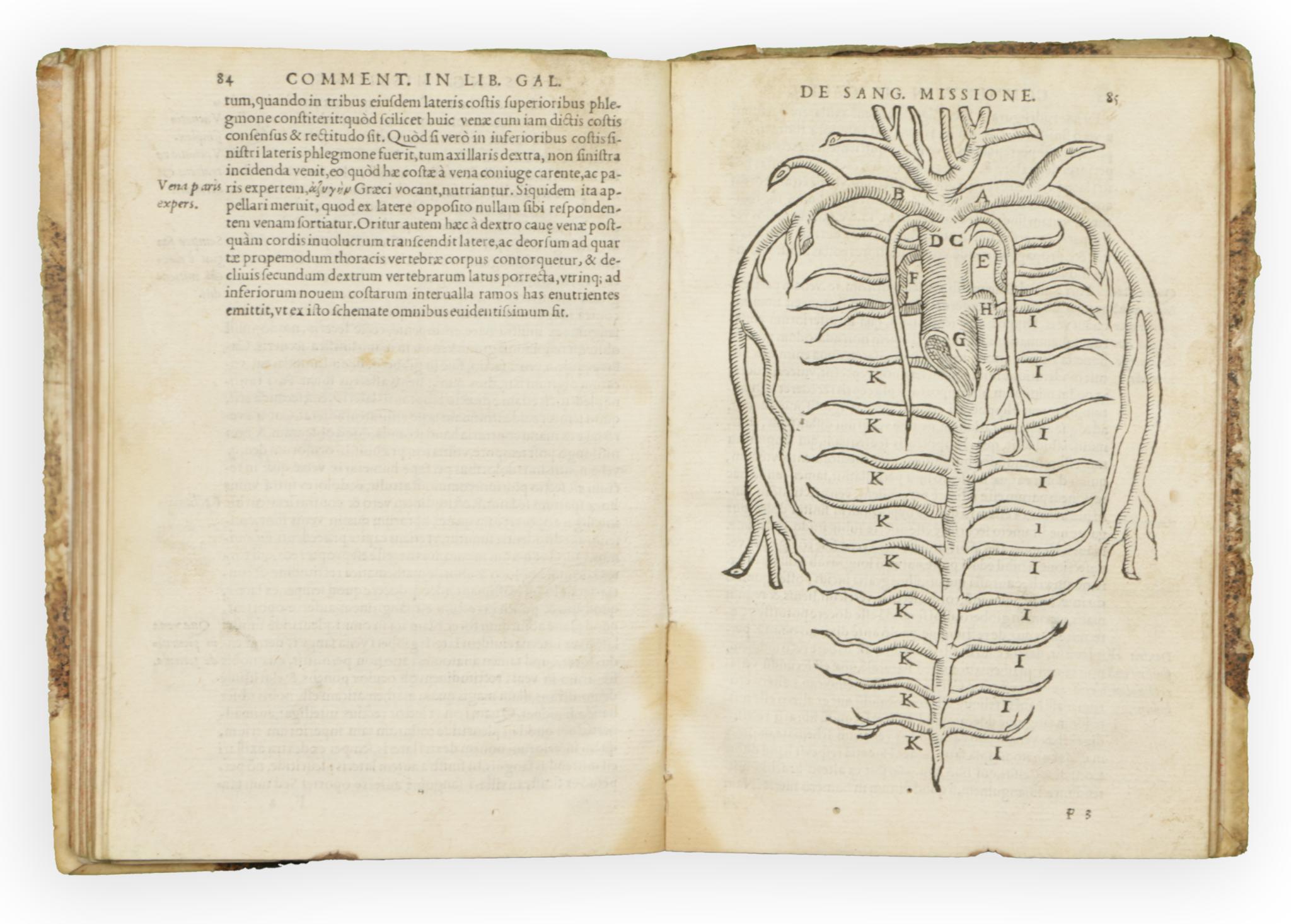 Leonhard Fuchs kivételesen ritka kiadása, mely Galénosz vérkeringésről szóló tanításait tartalmazza. Galénosz anatómiai és orvosi felfogására alapvetően az ókori görög orvosok, például Hippokratész által kidolgozott, akkoriban aktuális humorizmus-elmélet (más néven a négy temperamentum -- fekete epe, sárga epe, vér és flegma) volt hatással. Galénusz tanai és elméletei több mint 1300 éven át uralták és befolyásolták a nyugati orvostudományt. Galénosz úgy vélte, hogy a hármas tagolású lélek minden egyes része meghatározott funkciókat irányít a testen belül, és hogy a lélek egésze hozzájárul a test egészségének egészségéhez, erősítve „az adott szerv vagy szervek természetes működési képességét”.