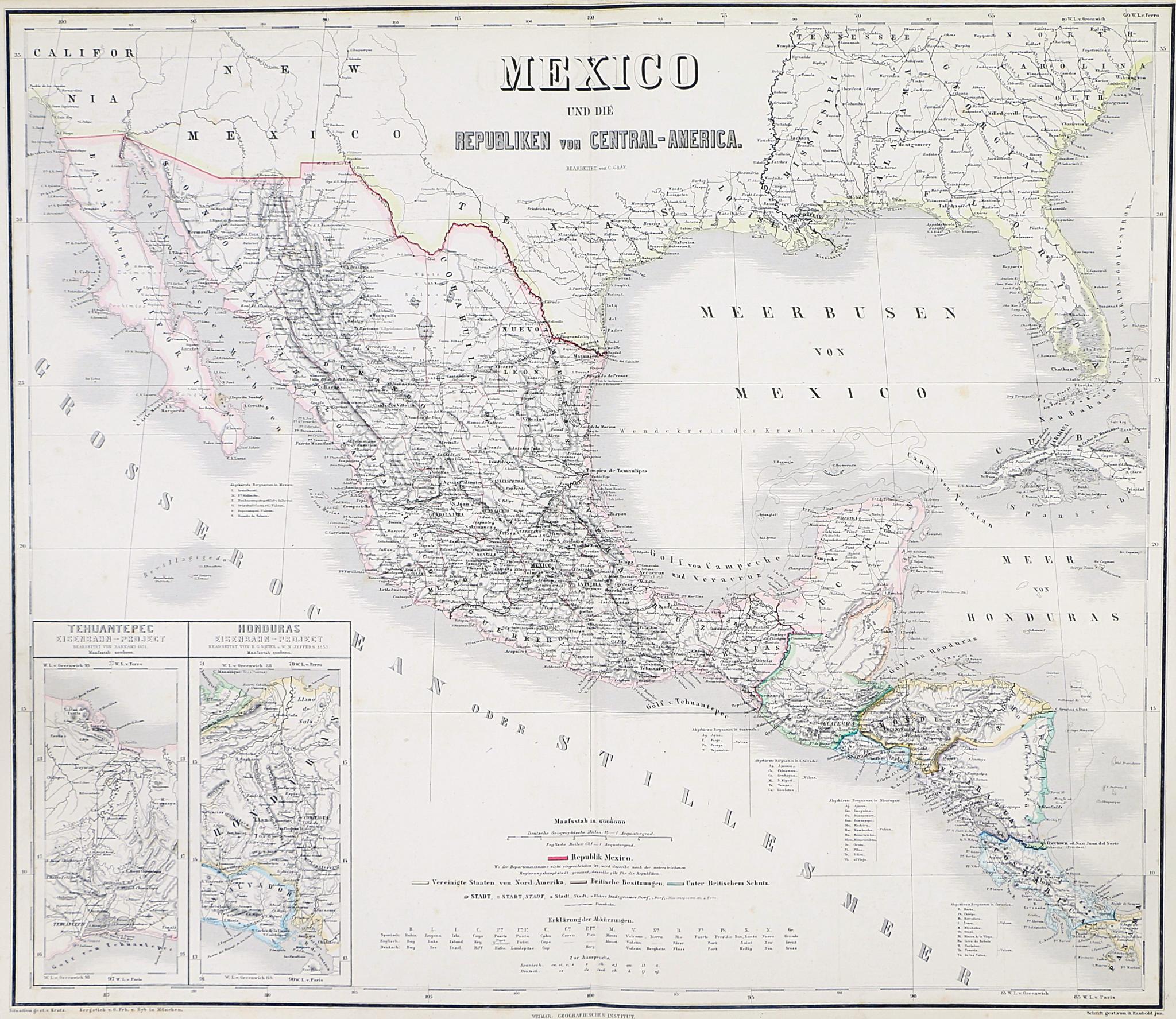 Mexico und die Republiken von Central-America / bearbeitet von C. Gräf ; situation gest. v. Kratz ; bergstich v. O. Frh. v. Eyb ; schrift gest. von O. Haubold jun.
