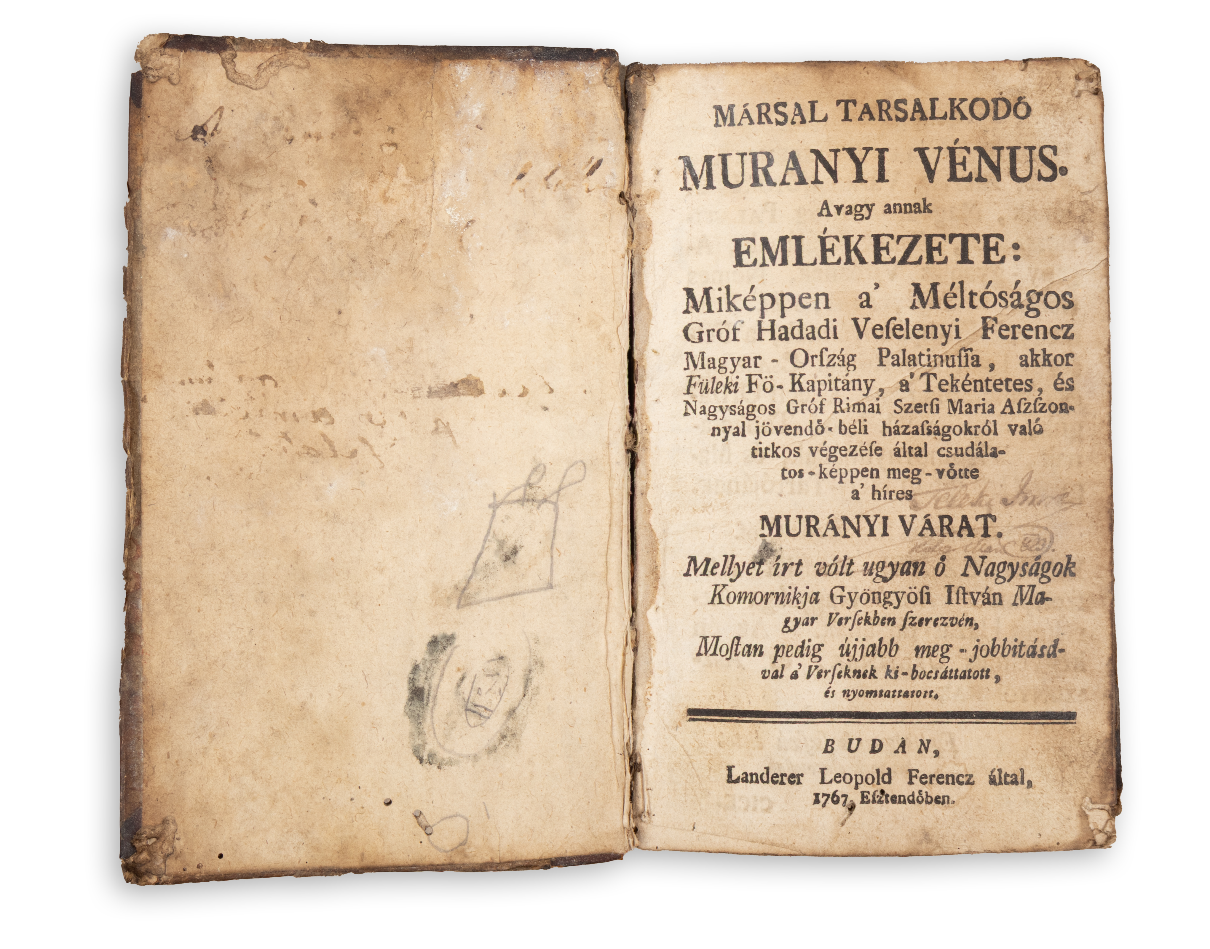 1767 Budán, Landerer Leopold FerenczAvagy annak emlékezete: Miképpen a Méltóságos Gróf Hadadi Veselenyi Ferencz Magyar-Ország Palatinussa...Budán, 1767. Landerer Leopold Ferencz. [112]p.