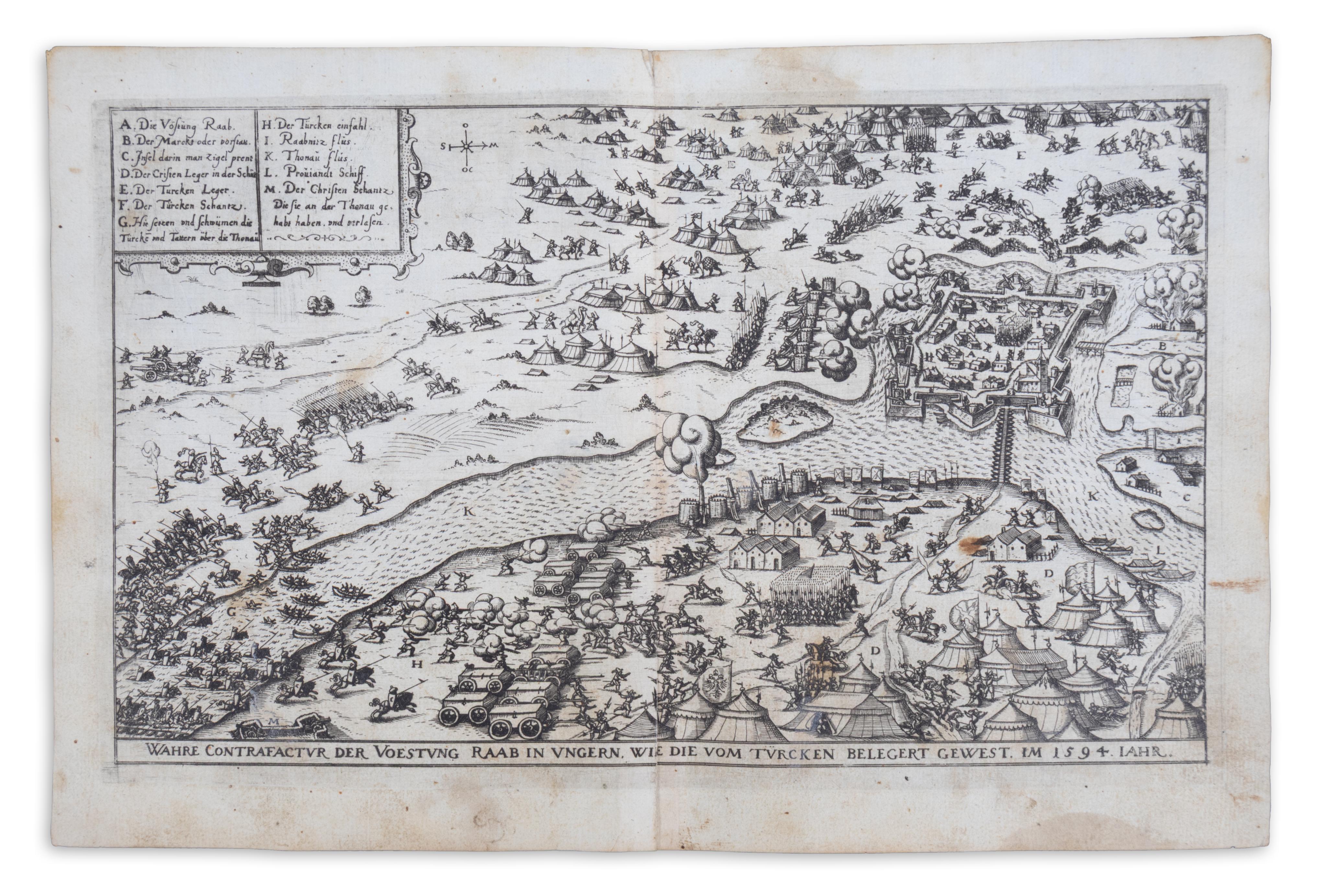 Siebmacher, Johann - Wahre Contrafactur Der Voestung Raab In Ungern, Wie Die Vom Türcken Belegert...[Győr ostroma 1594]