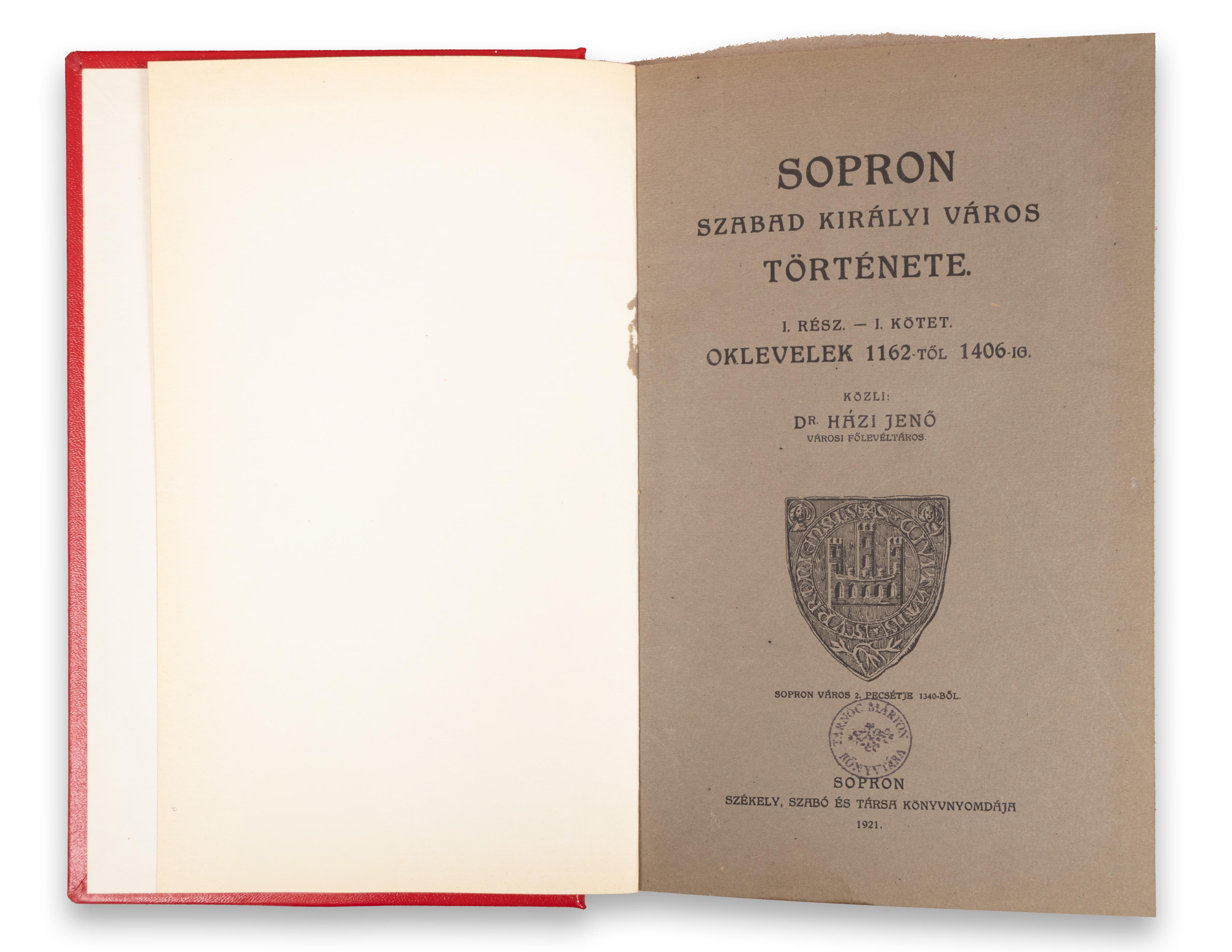 1921 Sopron, Székely és TársaSopron, 1921-1943. Székely, Szabó és Társa ny.