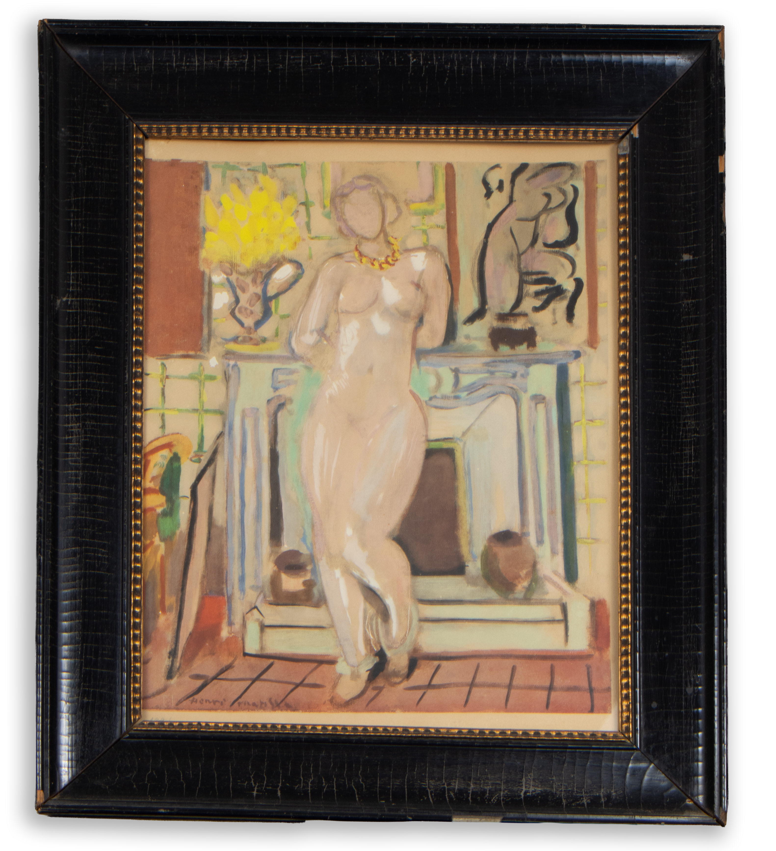 Collotype and stencil colouring, circa 1950.  Numbered 199/300 in pencil, lower left. Published by Guy Spitzer, Paris, with the blind stamp lower left.