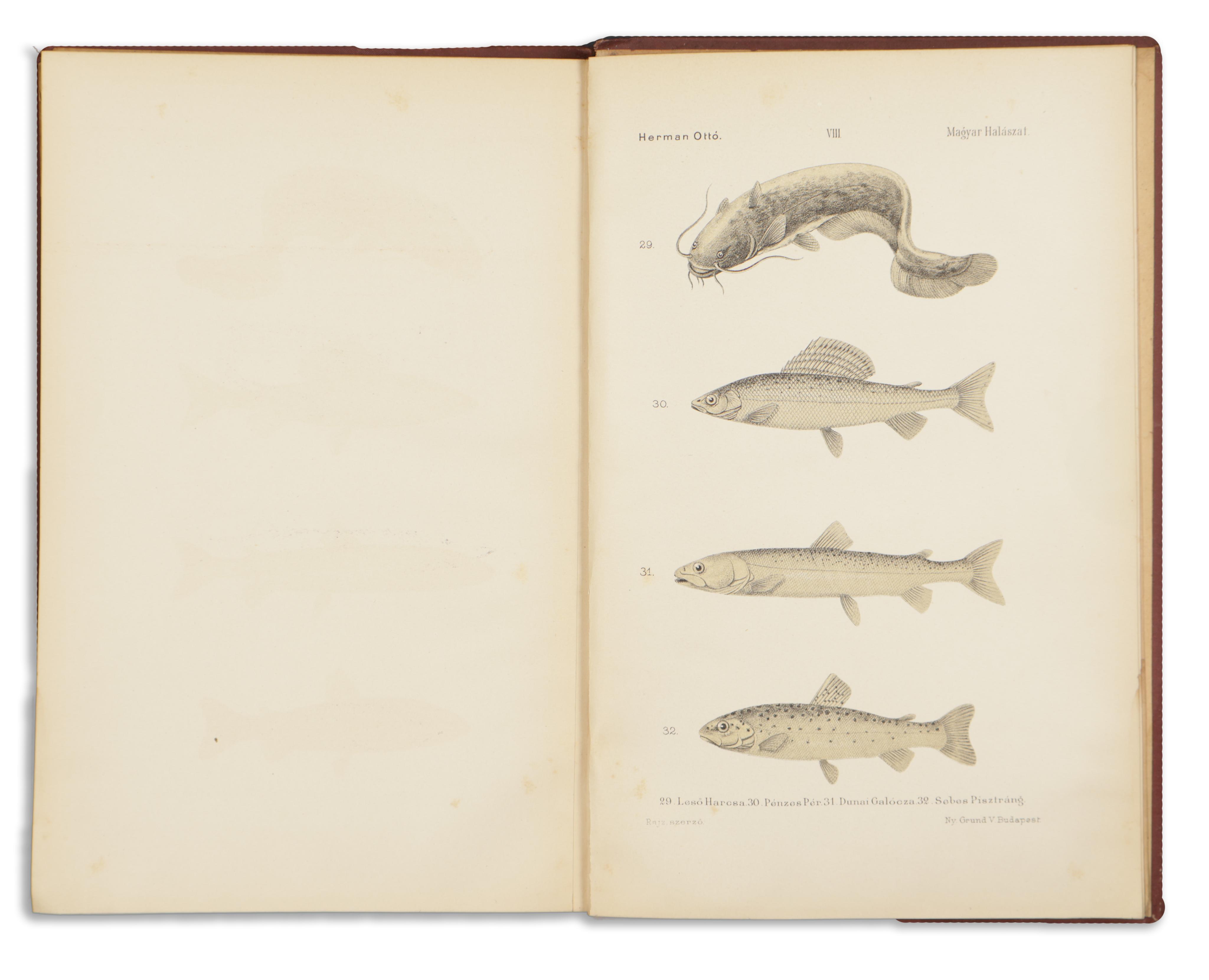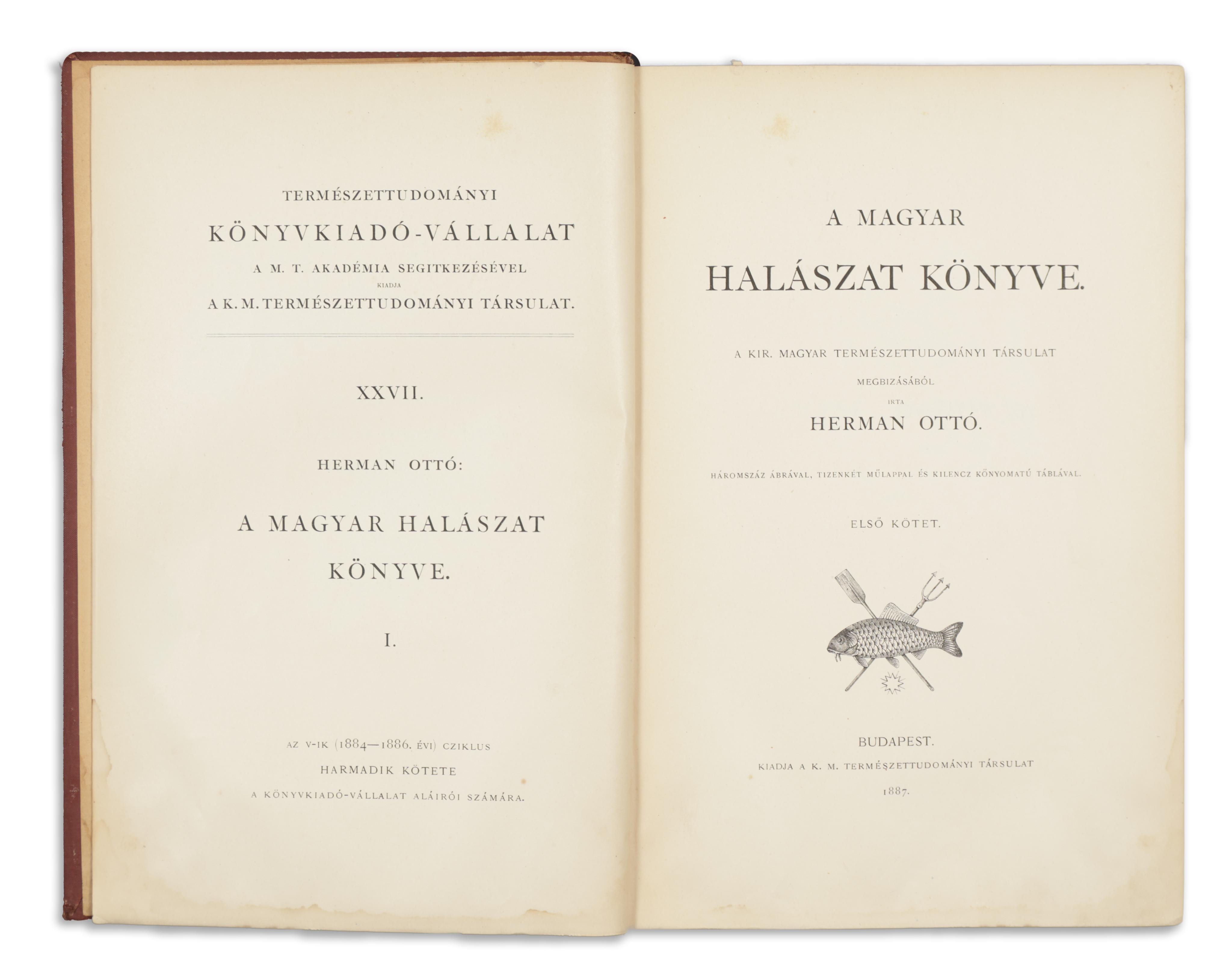 The book of Hungarian fishing, a basic work. Publisher's blind-stamped, lightly worn cloth binding. Corners of leaves slightly foxed, some with minor rust stains.