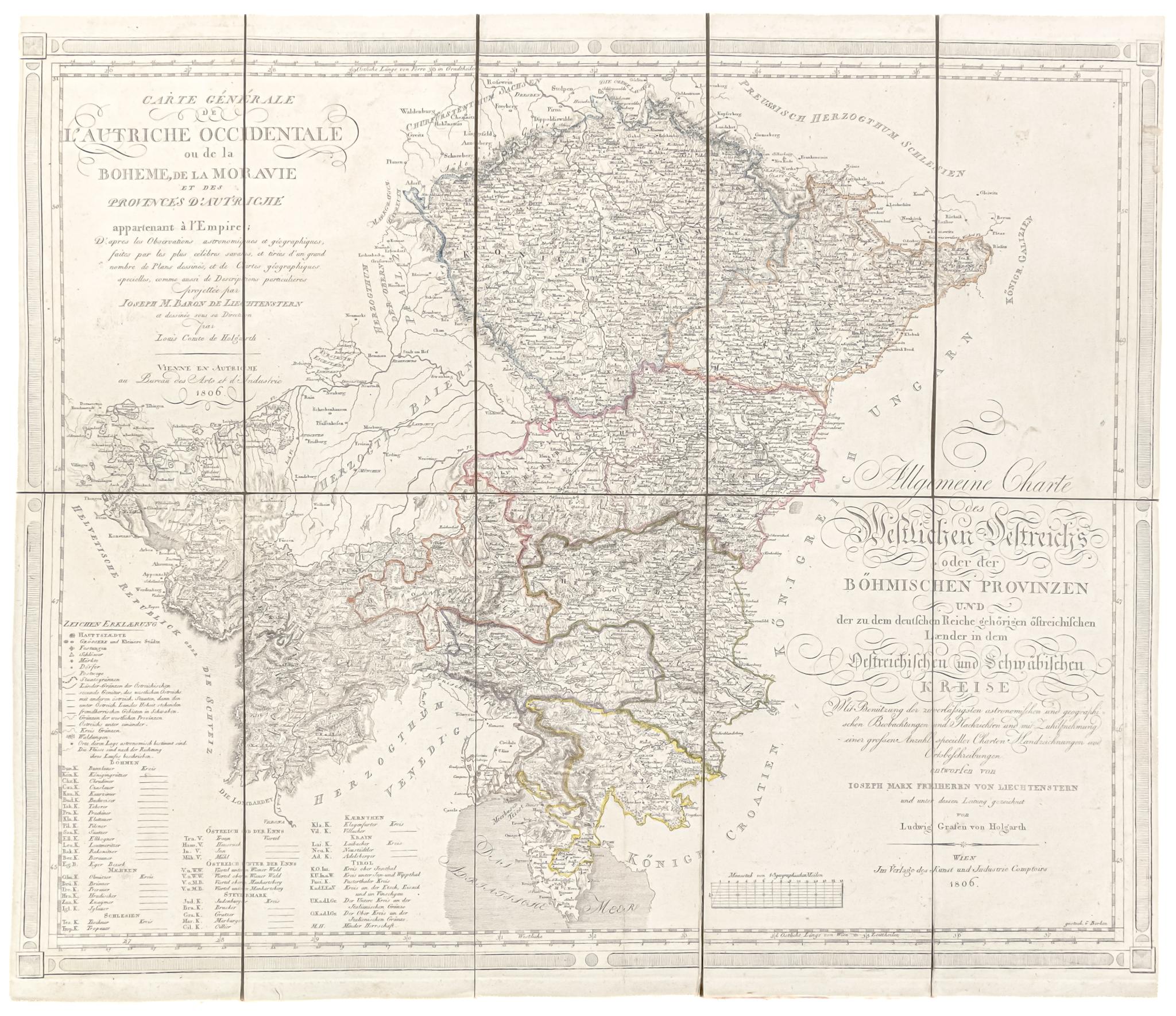 Allgemeine Charte des Westlichen Oestreichs oder der Böhmischen Provinzen und der zu dem deutschen Reiche gehörigen östreichischen Laender in dem Oestreichischen und Schwäbischen Kreise