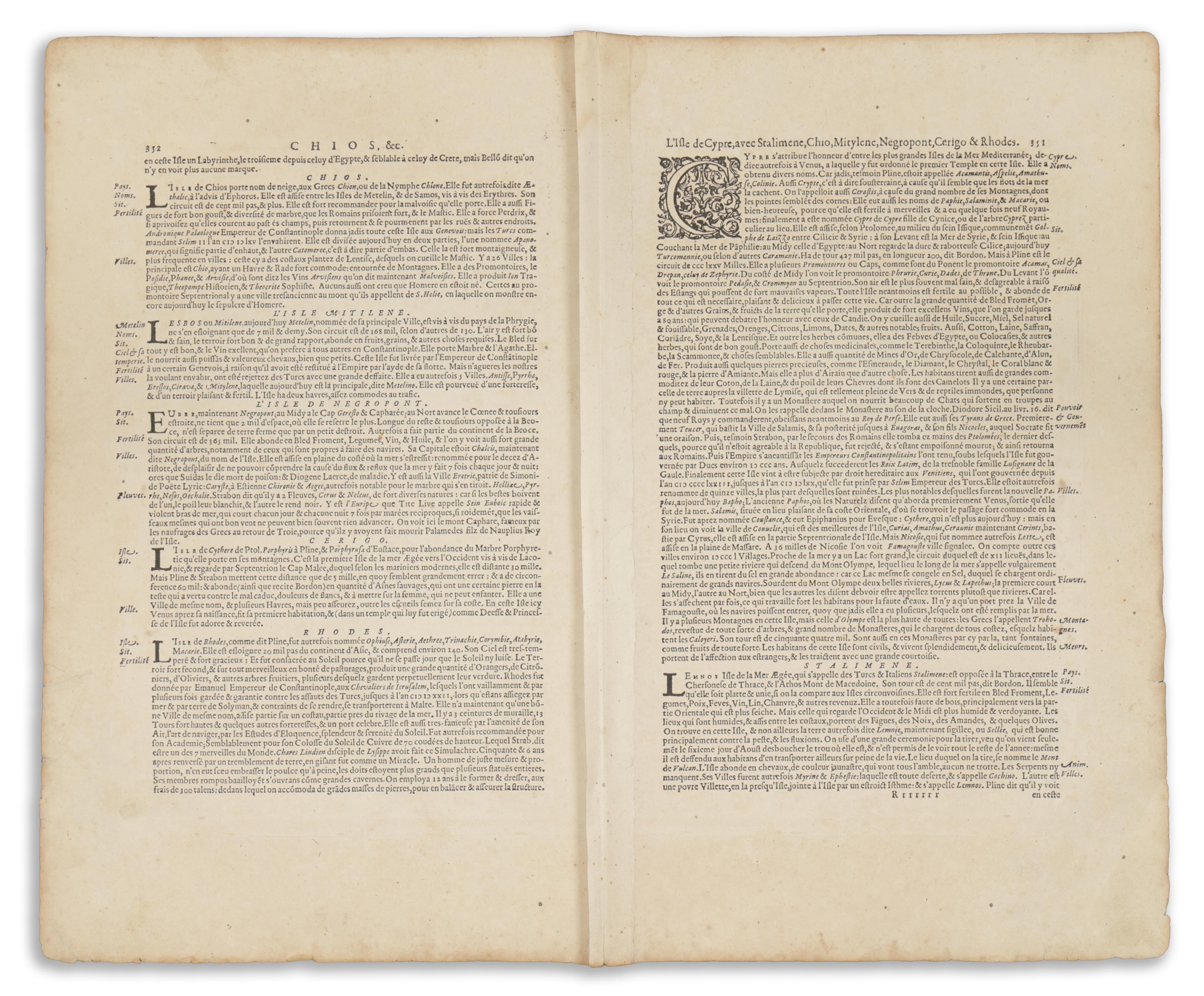 Korához képest jó állapotban, térkép mezőt nem érintő apróbb szakadásokkal. A verson francia szöveg, 351-352-os oldalszámok, "Rrrrrrr", a hajtás mentén megerősítve. Kiváló példány, széles margókkal.