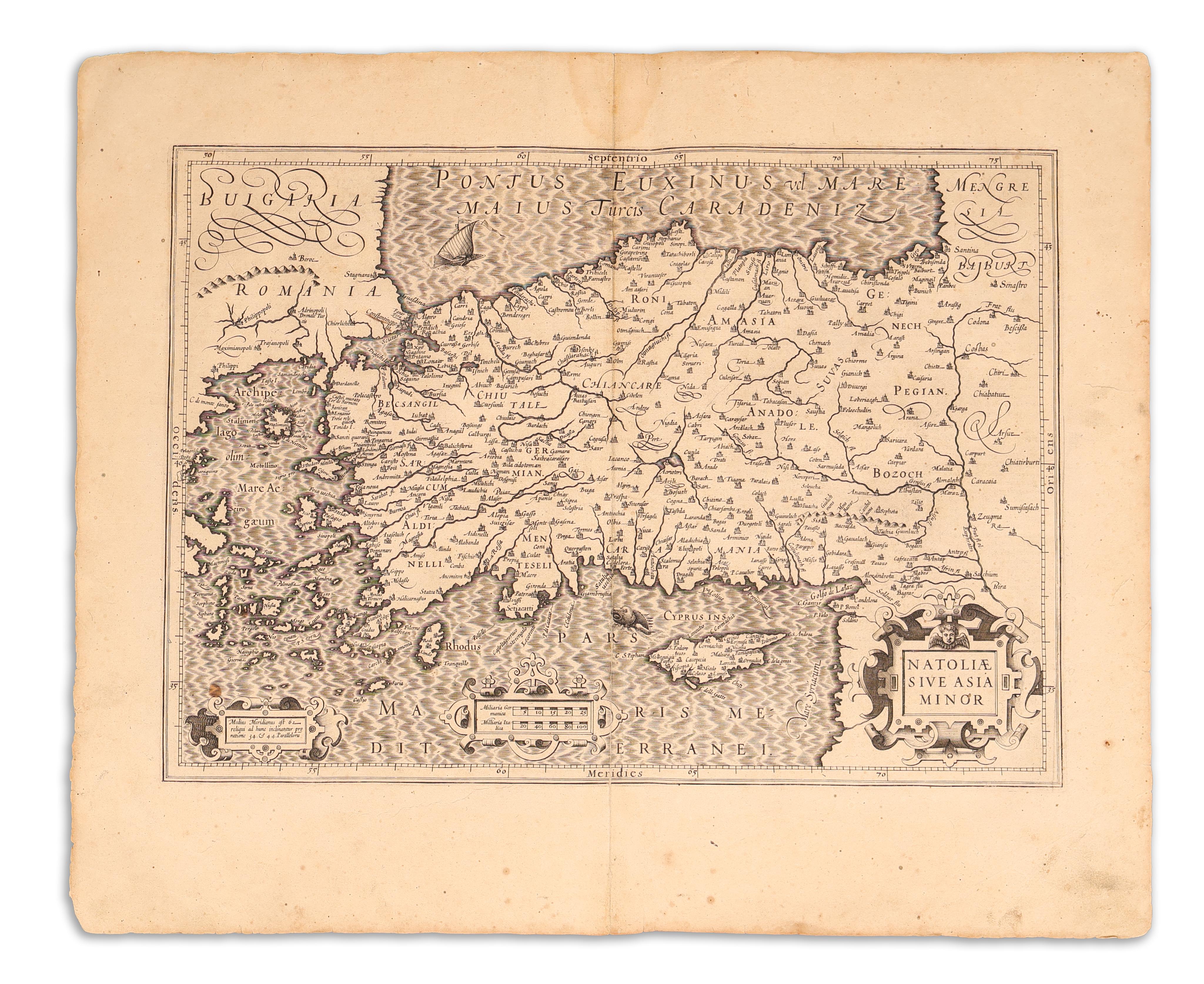 Mercator Törökországot, Kis-Ázsiát és Ciprust ábrázoló térképének dekoratív példánya, amely részletesen bemutatja a térség régióit, városait és domborzati jellegzetességeit. A térkép bepillantást enged Kis-Ázsia 17. század eleji politikai határaiba és természetföldrajzi adottságaiba. A környező tengereken hajók és tengeri szörnyek. Gazdagon illusztrált kartussal.