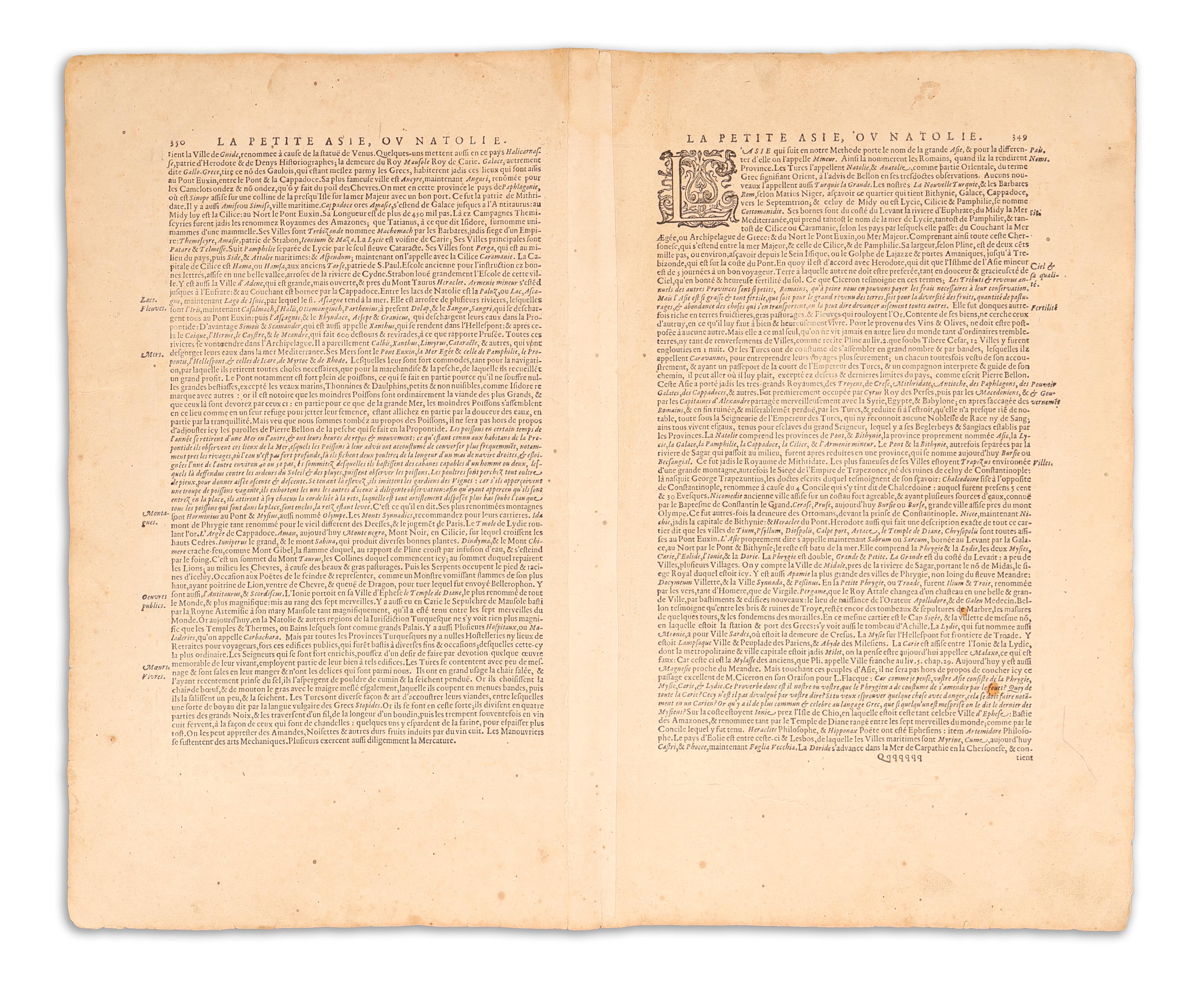 A hátoldalon francia nyelvű szöveg, oldalszám: 349, signum: Qqqqqqq. Jó állapotban, széles margókkal. A hajtás mentén a verson megerősítve.