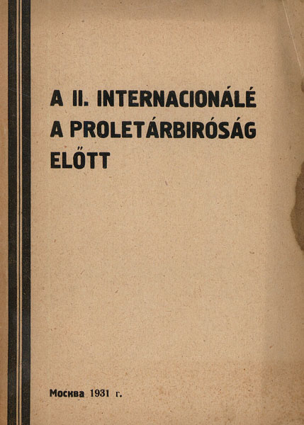 A II. Internacionálé a proletárbiróság előtt. Hogyan vesznek részt a szocdemek a Szovjetunió-ellenes háboru előkészitésében és hogyan igyekeztek dezorganizálni a szocialista épités munkáját. (Vádirat és itélet az oroszországi mensevikek "Tanácsszövetségi Irodá"-ja pörében).