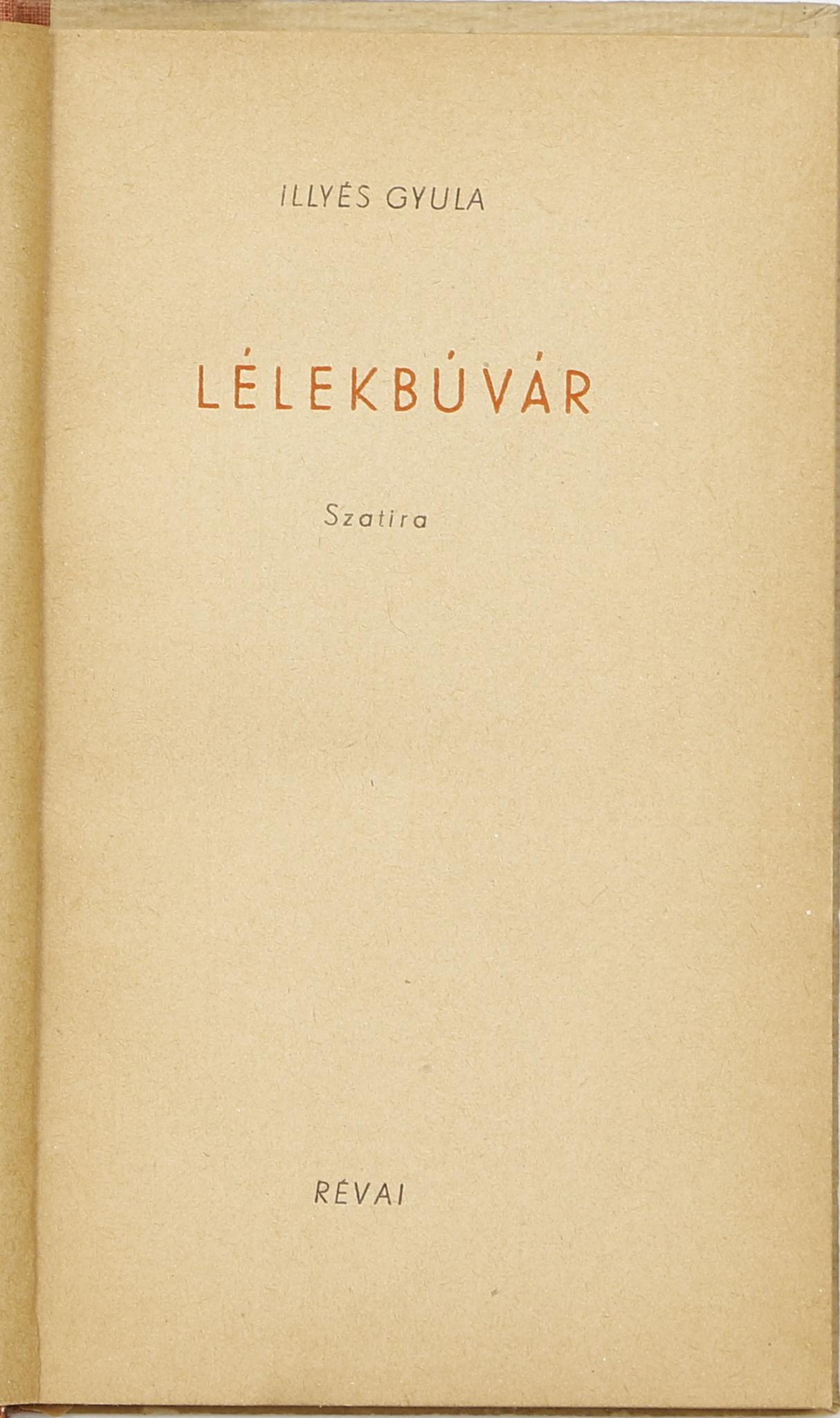 1948 Budapest RévaiIllyés Gyula (1902–1983) vígjátéka a pszichoanalízisről, mely a kor értelmiségének körében nagy sikert aratott. Az 1948. novemberi bemutató után egy nyilvános vitán úgy értékelték a darabot, hogy az nem a munkásosztály problémáival foglalkozik, így az lekerült a Magyar Színház műsoráról. A darabból ennek ellenére 1966-ban rádiójáték készült, és a Nemzeti Színház társulata még 1988-ban is műsorra vette.