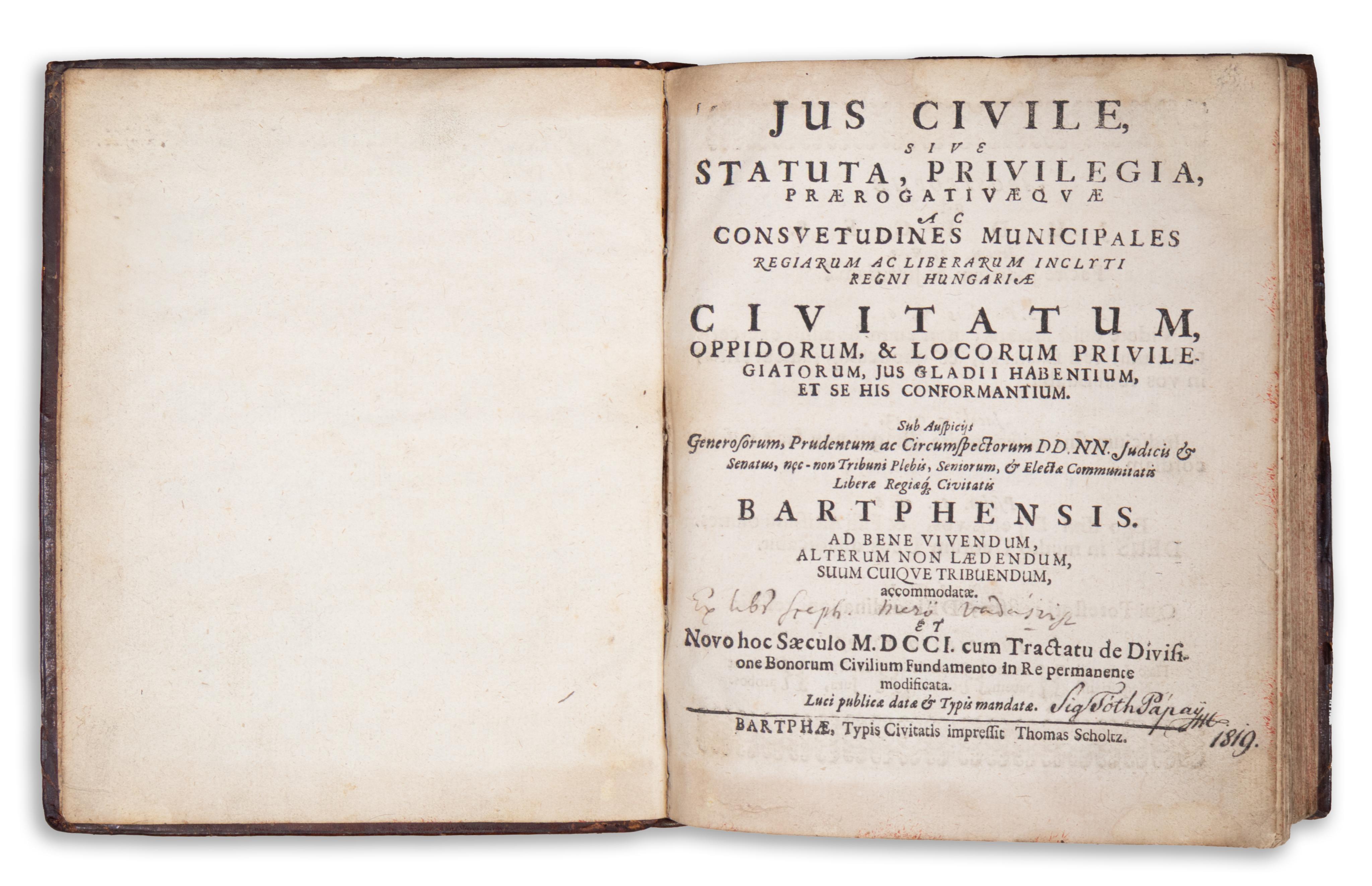 A rare work of Hungarian-Latin legal history. Contemporary, skillfully restored full leather binding.