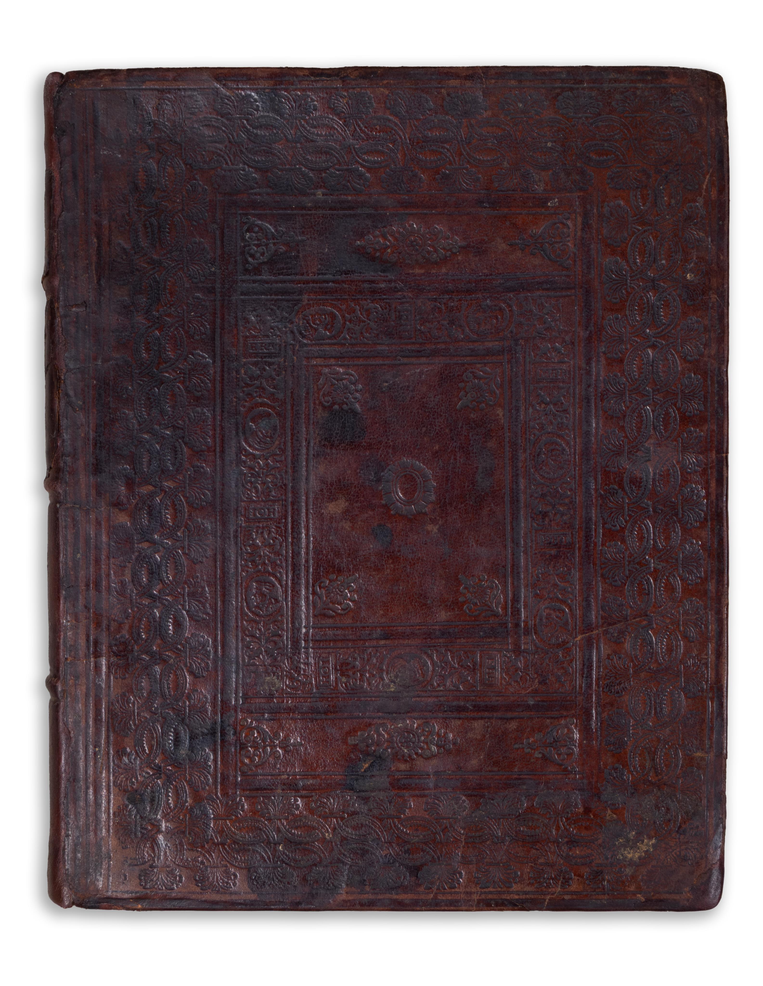 Korabeli, javított egészbőr kötésben. Többszörösen keretezett tábláin gazdag növénymintázattal és emblémákkal díszítve. Előzékén rövid tartalommagyarázat. Címlapján Stephanus Mező Vasvári és Pápay Tóth Sigmond 1819-es possessori bejegyzése. Ritka mű, a gerinctől eltekintve szép állapotban.