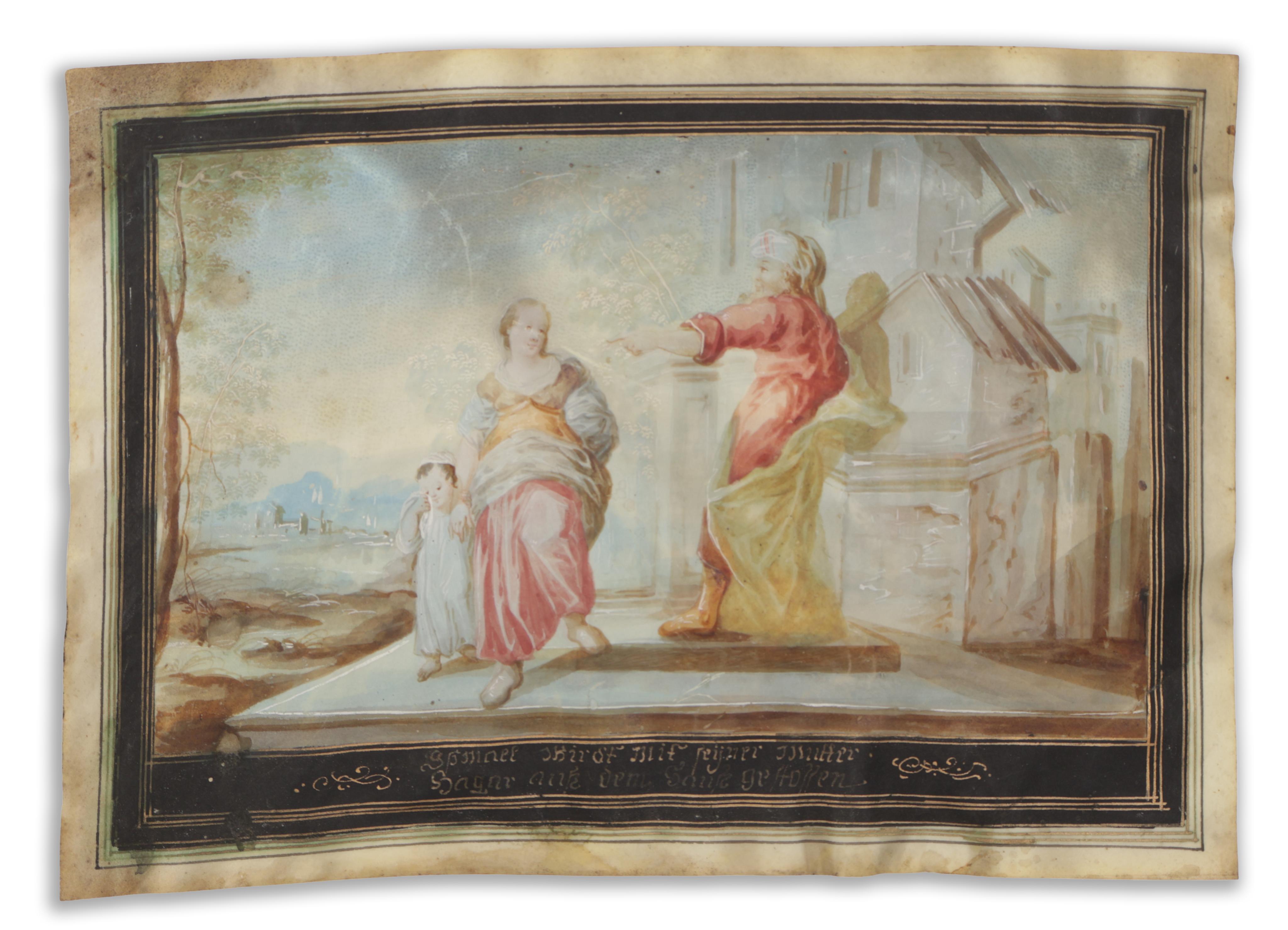 18th century biblical scene in baroque style, with German gilt text.