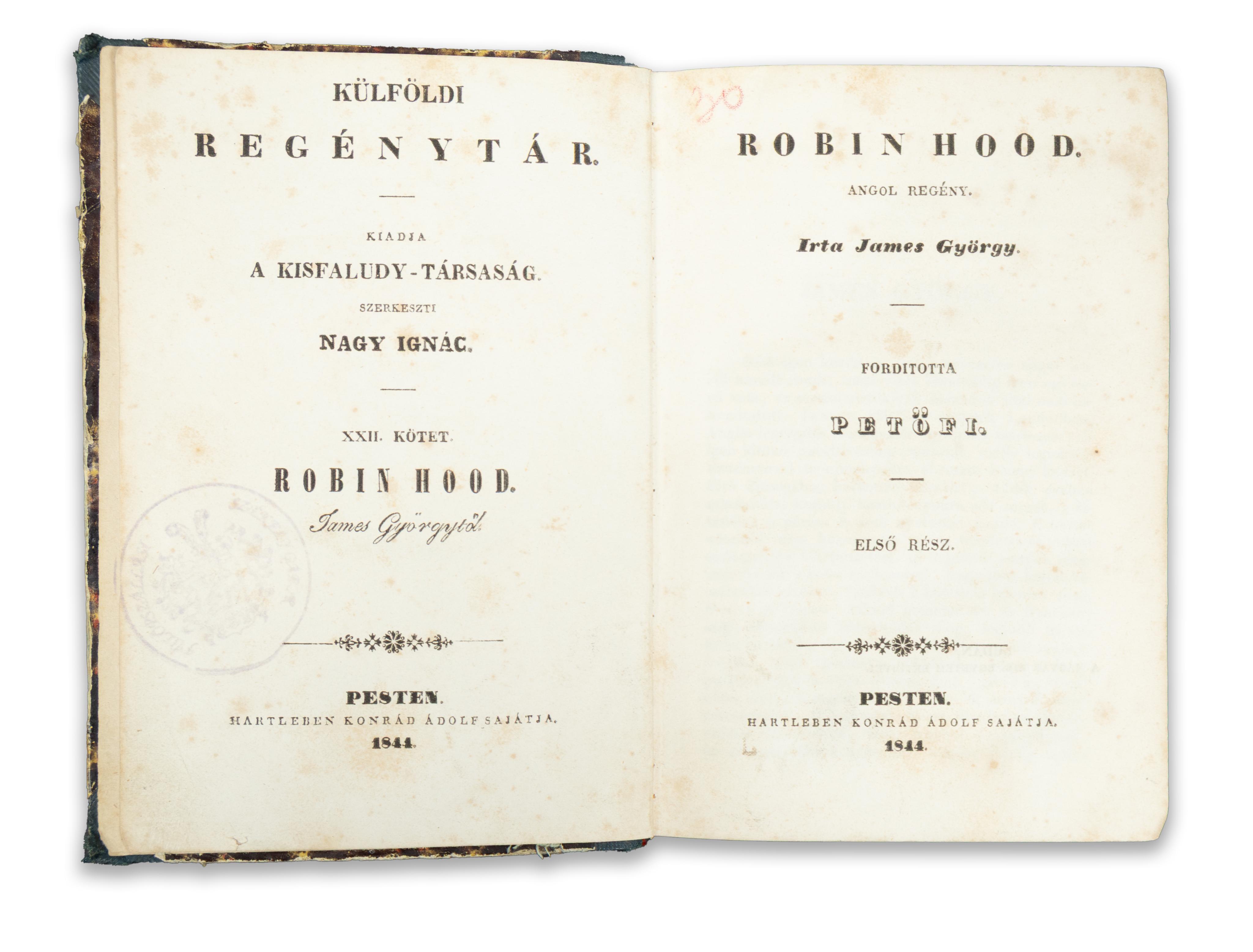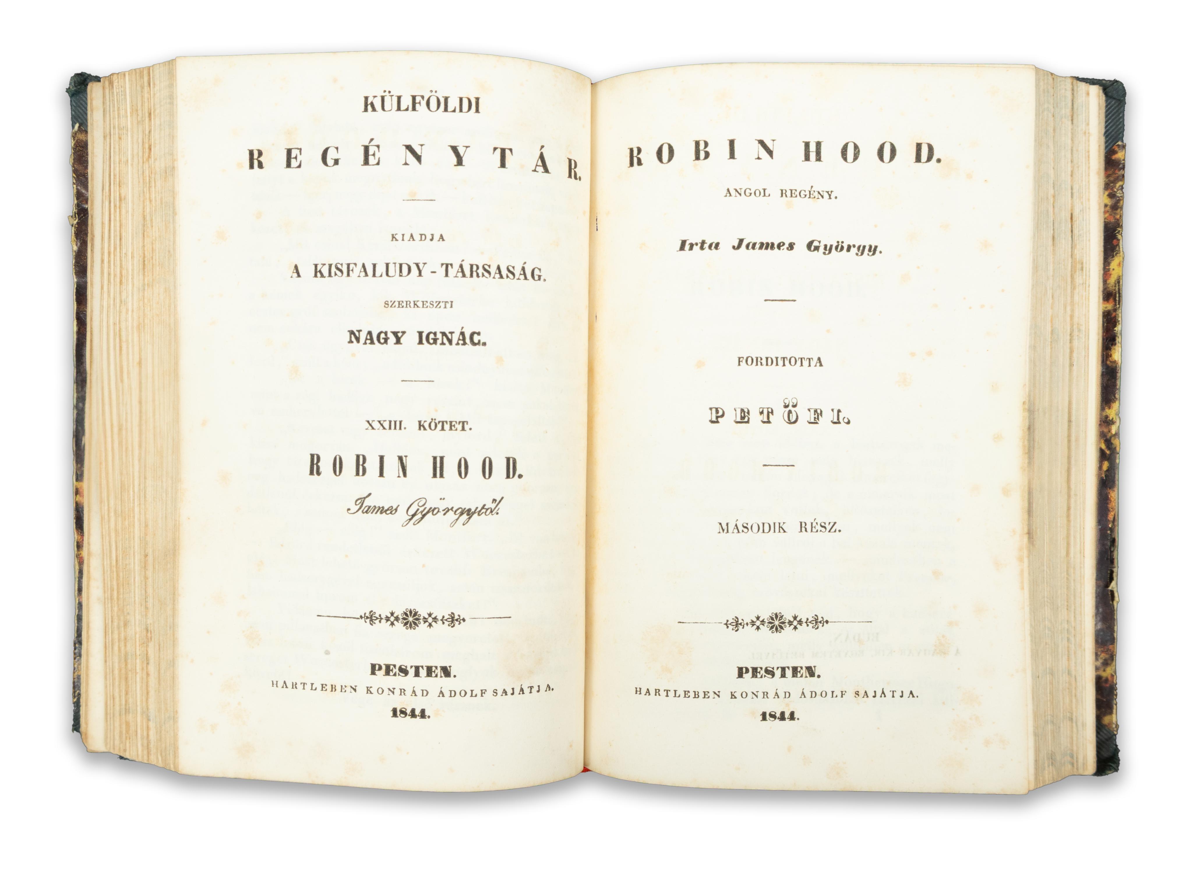 Robin Hood. The first Hungarian translation of the famous novel by Sándor Petőfi.