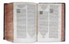Egységesen kötve XVII.–XVIII. századi bőrbe, aranyozott gerinccel és gazdagon aranyozott védőborítóval; enyhén kopott, sarkai ütődöttek, némely részen megkopott, néhány féreglyuk, a 3. kötet sarkain utólagos megerősítés. Folio (37×27 cm). A címlapokon a salzburgi Szent András kolostori könyvtár és a jezsuita rend bélyegzői láthatók, valamint kézírásos ajándékmegjelölés a salzburgi kolostori könyvtár számára. A 4. kötet címlapján alul pótolt sarokhiány, az index címlapja oldalt kiegészítve.