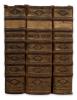Uniformly bound in 17th–18th century leather, with a gilt spine and richly gilt covers; slightly worn, corners bumped, some areas rubbed, a few wormholes, corners of volume 3 reinforced later. Folio (37 × 27 cm). The title pages bear the stamps of the Salzburg St. Andrew’s Monastery Library and the Jesuit Order, as well as a manuscript gift inscription to the Salzburg monastery library. The title page of volume 4 has a restored lower corner; the title page of the index has been partially supplemented at the side.