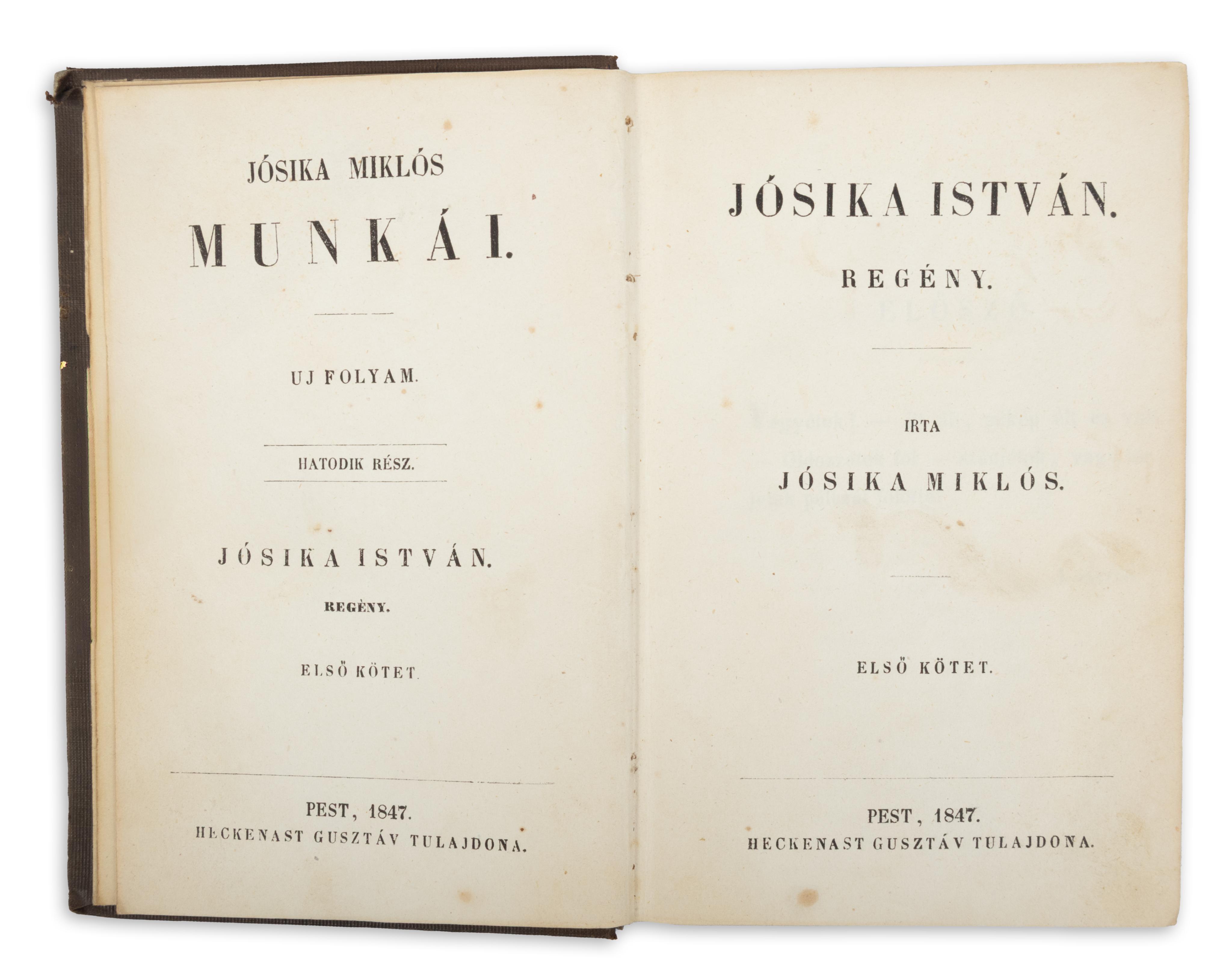 Jósika István. Regény. [I-V. kötet, kettőbe kötve]