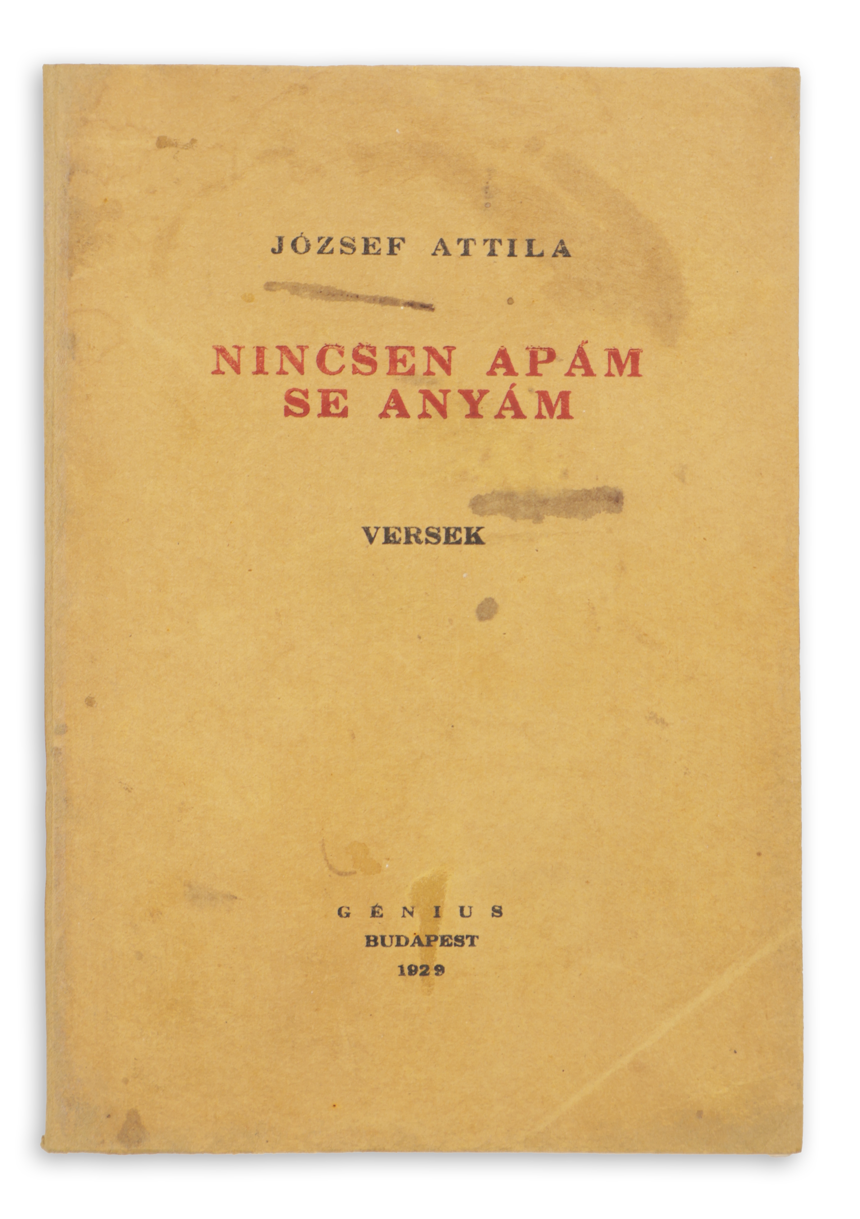 Signed and numbered first edition book of poems by Attila József. In publisher's restored paper. All but two leaves are repaired.