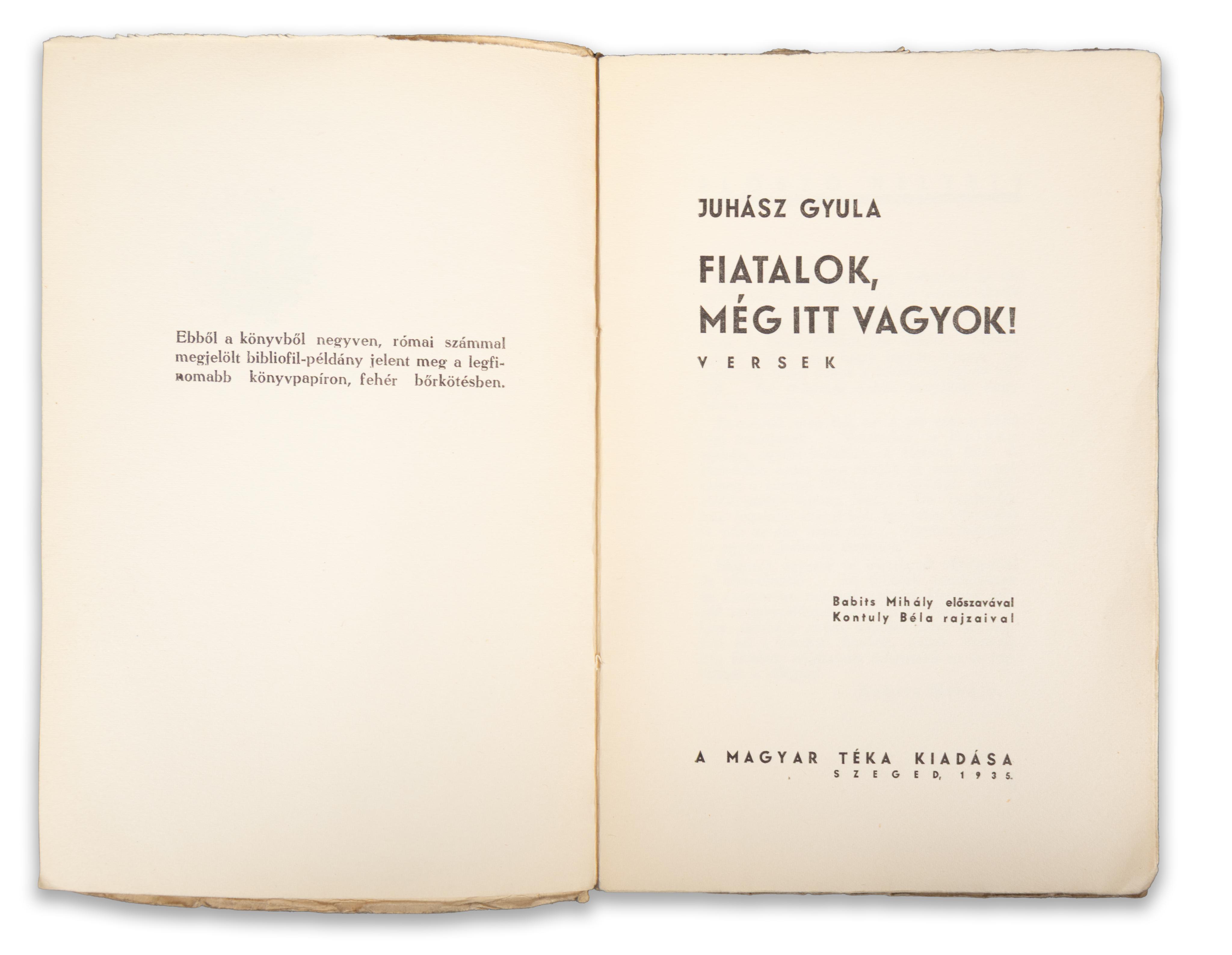 Számozott példány: 76/?. Babits Mihály előszavával, Kontuly Béla rajzaival.