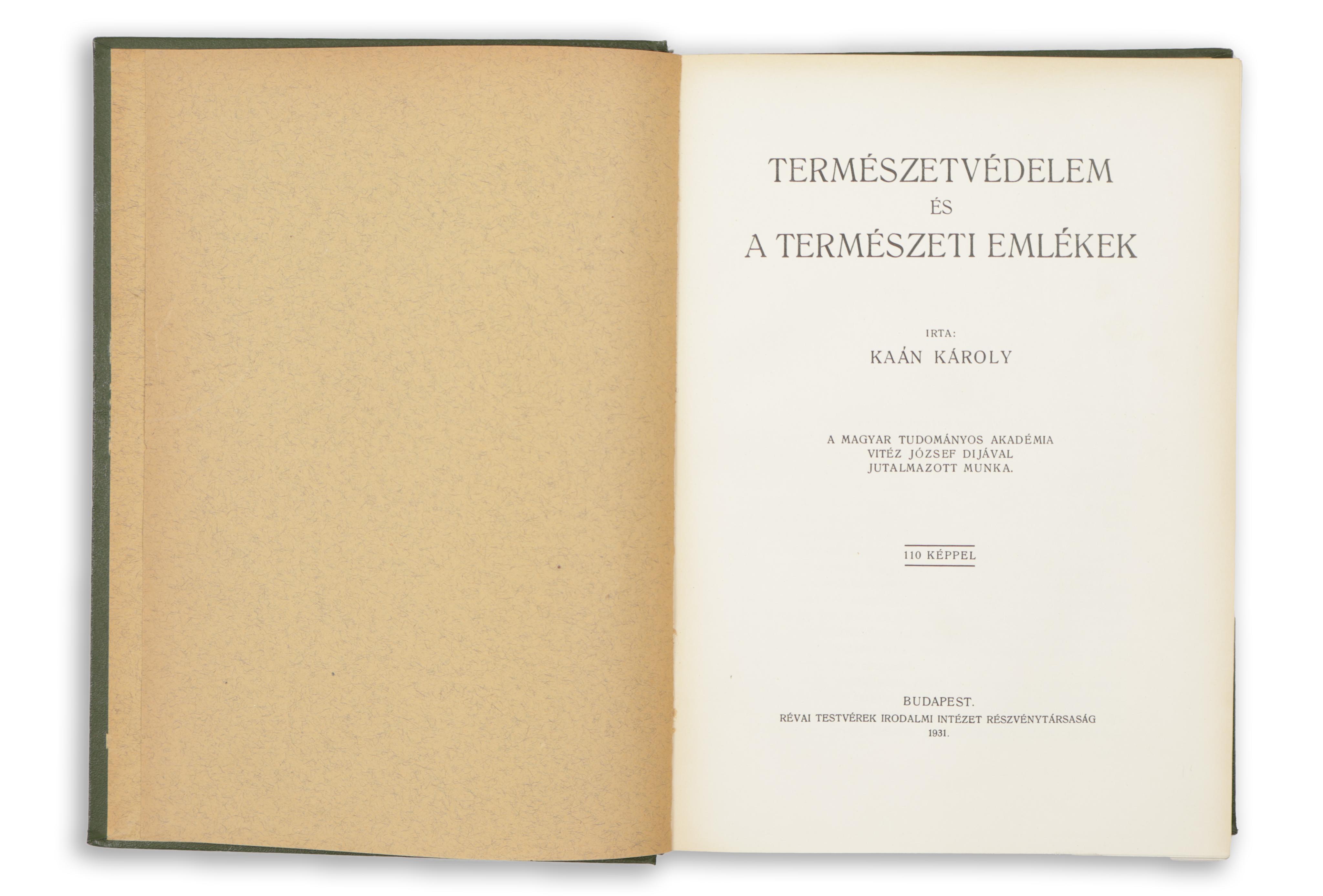 Kaán Károly: Természetvédelem és a természeti emlékek - A Magyar Tudományos Akadémia Vitéz József díjával jutalmazott munka.110 képpel.