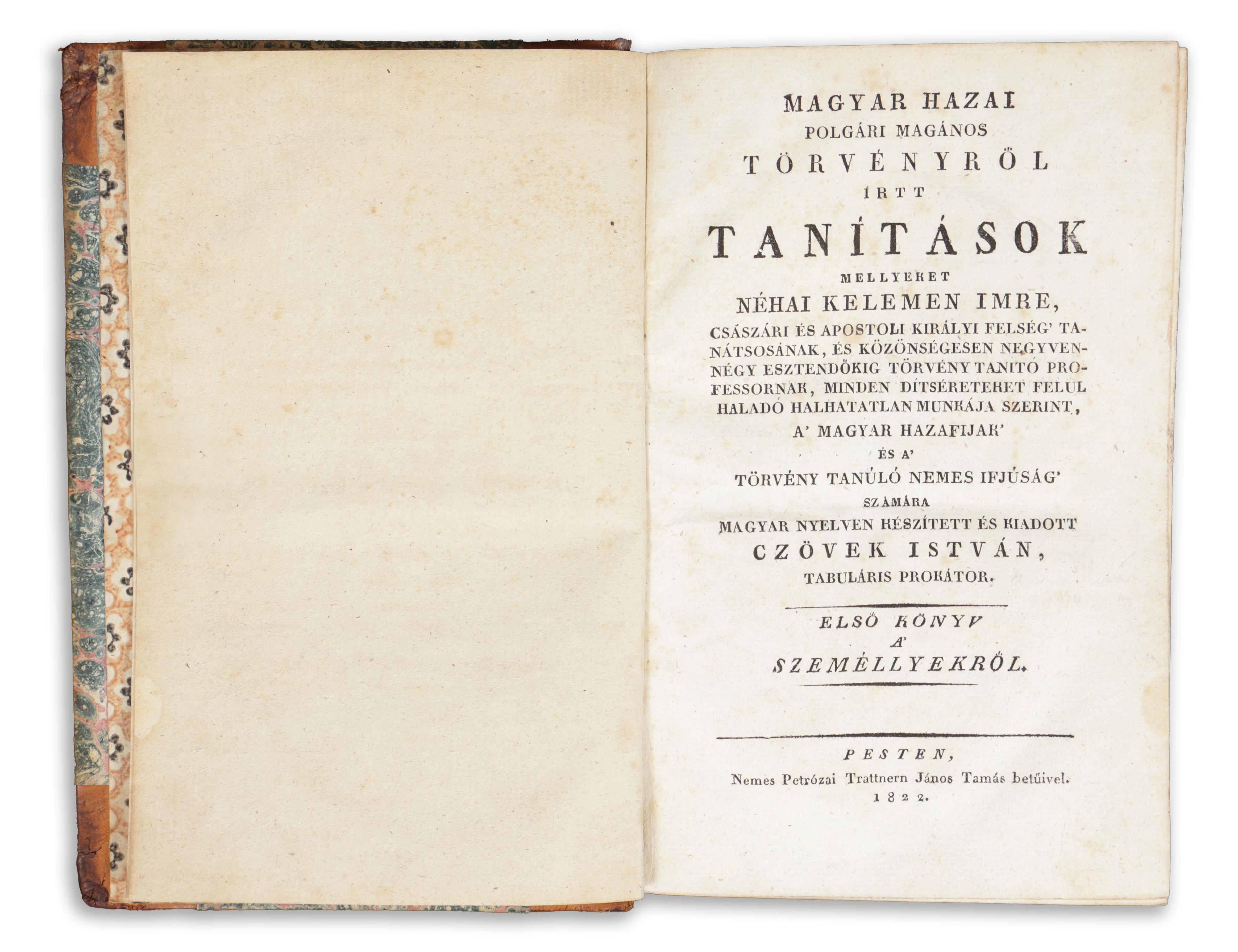 Az első hazai átfogó polgári jogi munka első magyar nyelvű kiadása, latinul már 1814-ben megjelent.