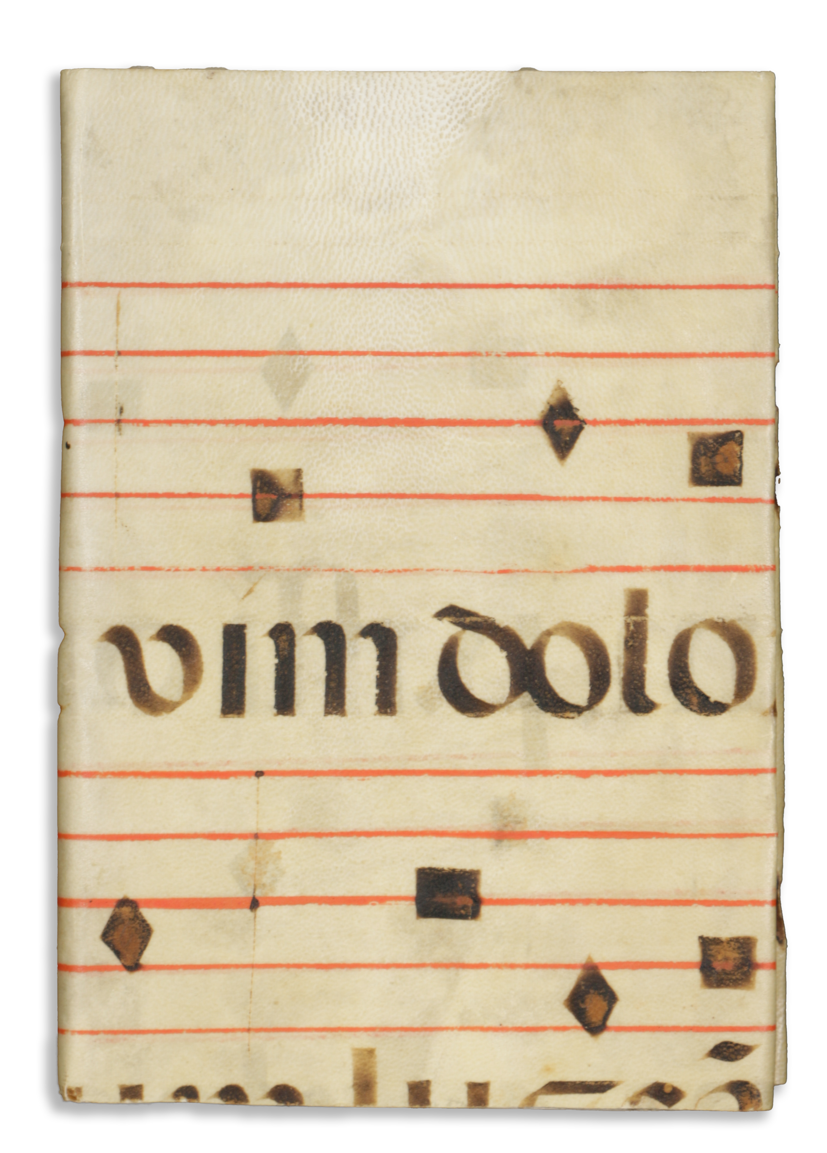 Újkori, antifonáléval díszített pergamenkötésben. Első levele javított az elején, nyolc levél erősen foltos. Hiány: az elején a két levél, ami a címlap és verso [tabula], majd a tabula r és v; - 33-40 levelek; - a 62. levél. Az első táblán possessori beírás: Jan P. Beckmann, 1980, az előzéken beragasztott ex librise. A hátsó tábla versóján korábbi árverési címke maradvány és a művel kapcsolatos ceruzás információk. Nyolcadrét munka, lap mérete 156×106 cm.