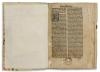 In a modern vellum binding with antiphonal decoration. First leaf repaired with the front, eight leaves heavily stained. Missing: the two leaves at the beginning (the title page and verso [tabula]), followed by tabula r and v; - leaves 33-40; - leaf 62. Possessor's inscription on front board: Jan P. Beckmann, 1980, ex libris pasted on front board. Remnant of former auction label and pencil information about the work on verso of back board. Octavo, sheet size 156×106 cm.