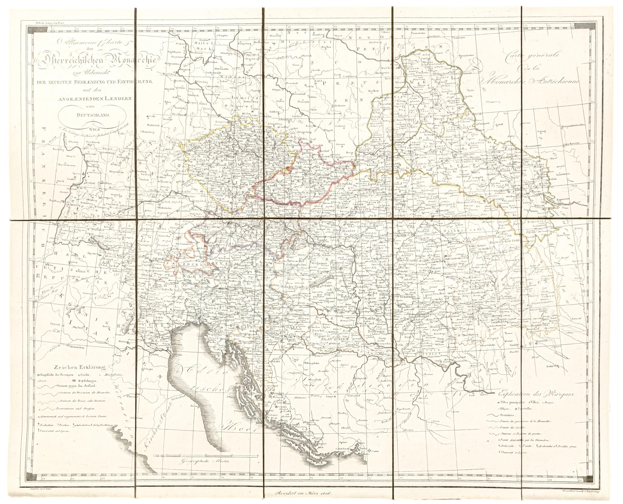 Allgemeine Charte der österreichischen Monarchie zur Uibersicht der neuesten Begrenzung und Eintheilung, mit den Nebenlaendern des österreichischen Hauses in Deutschland. – Carte générale de la Monarchie Autrichienne