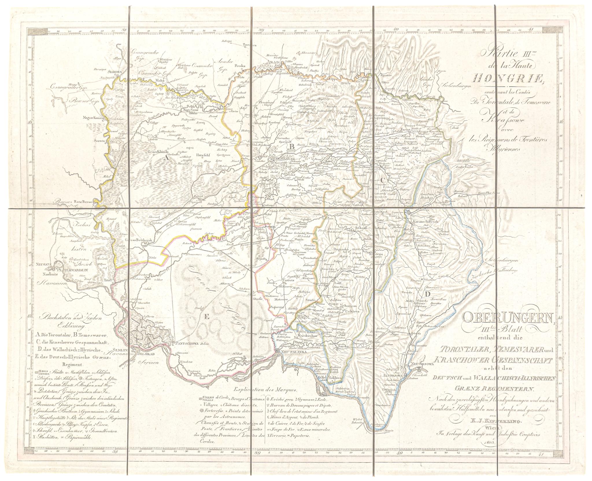 Oberungern. IIItes Blatt enthaltend die Torontaler, Temesvarer und Kraschower Gespannschaft, nebst den Deutsch und Wallachisch - Illyrischen Graenz Regimentern