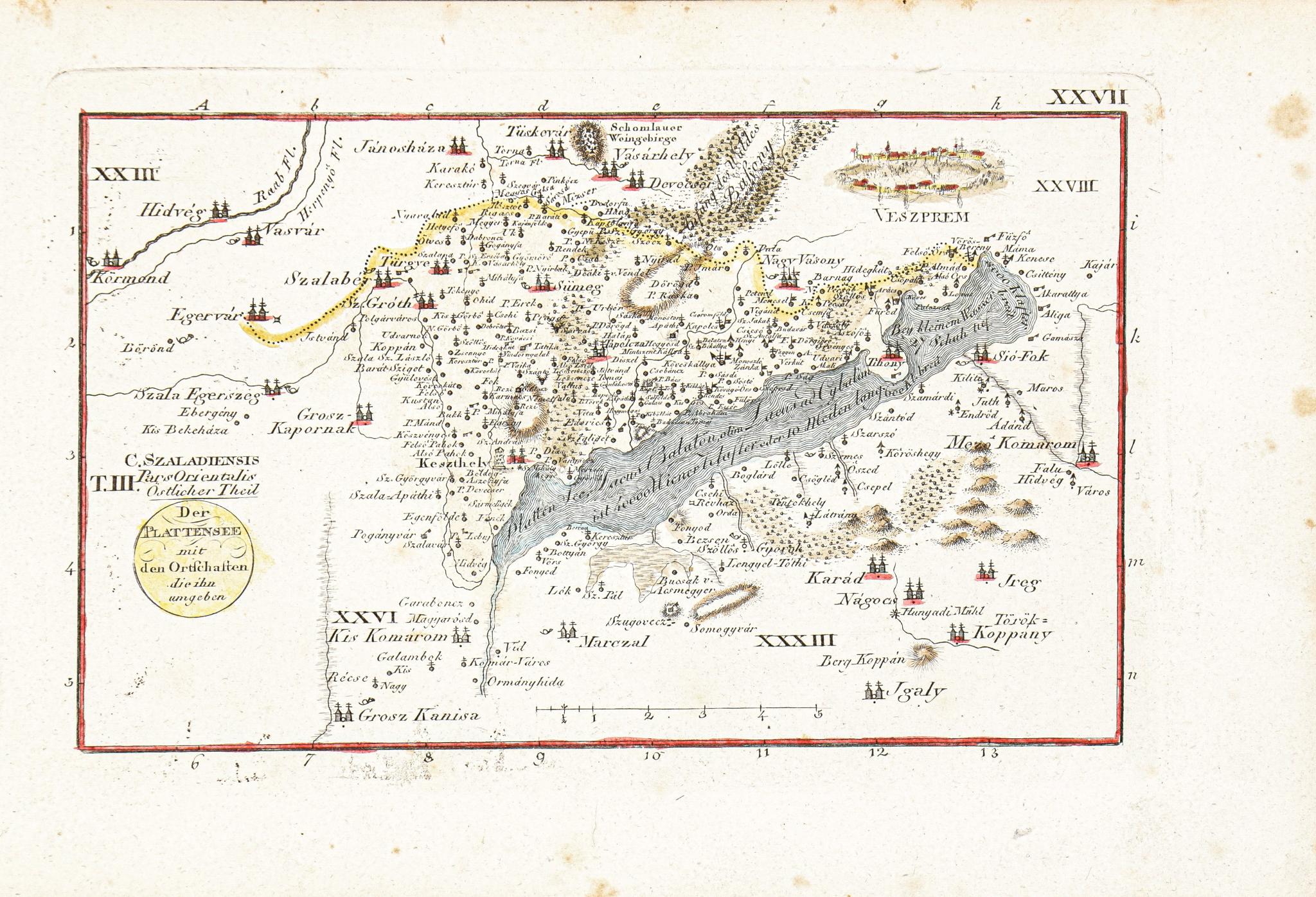 Bécs, 1805. Schaumburg.XXVII-as számú térkép a Balaton térségéről. Kézzel színezett rézmetszet.