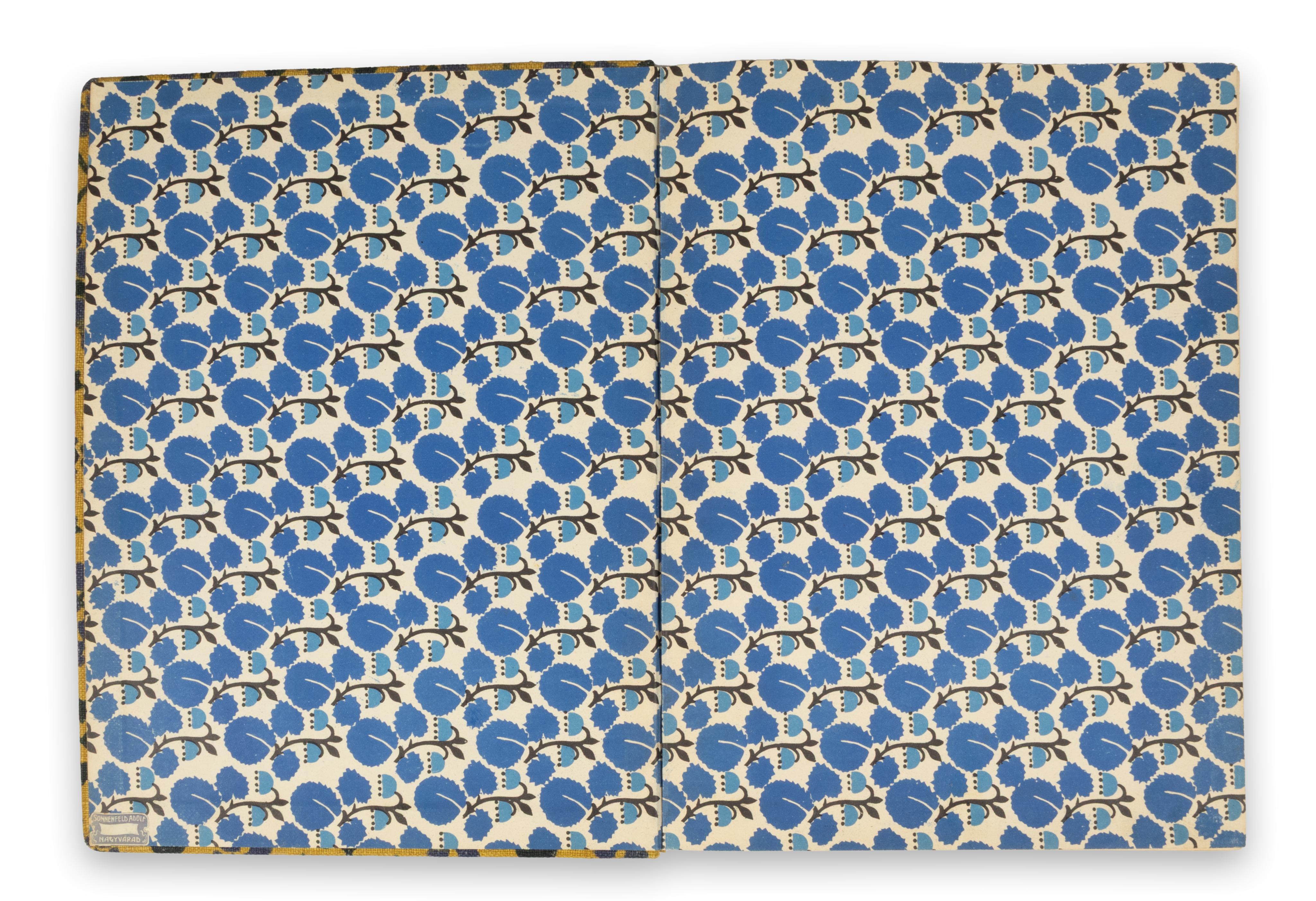 Az elülső kötés versoján Sonnenfeld Adolf nyomdájának vignettája látható. A Sonnenfeld-nyomda a polgárvárossá, irodalmi, művészeti centrummá fejlődött egyszerre tradicionálisan ősi és forradalmian modern Nagyváradban működött. A Sonnenfeld Adolf (később Gusztáv) vezette műhely a város legprosperálóbb vállalkozása volt; igen széles termékpalettával bírt, amelynek a papírkereskedésből, nyomdából és könyvkötészetből álló cégegyüttese országos jelentőségre tett szert.