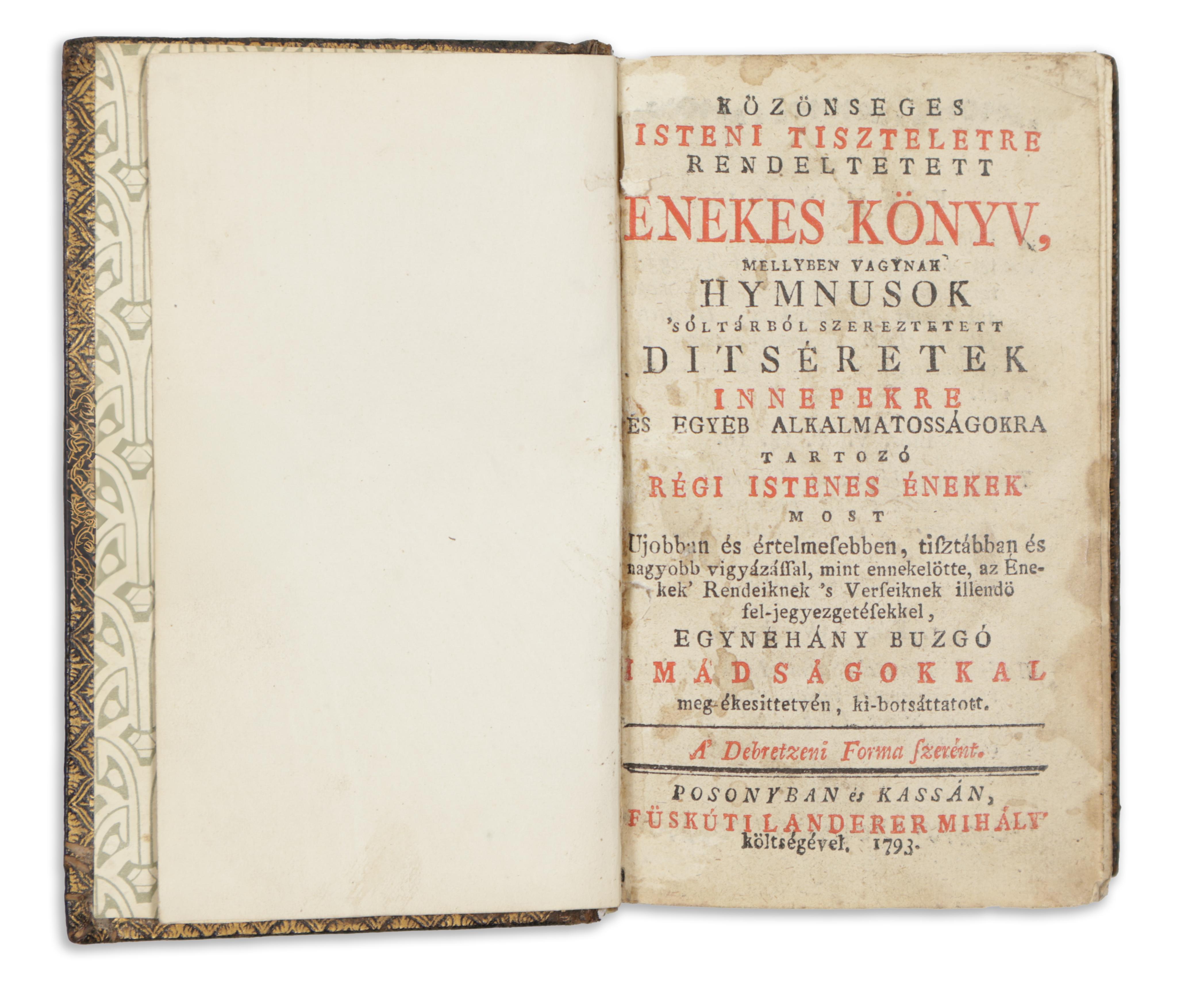 Közönseges Isteni Tiszteletre rendeltetett Énekes Könyv, mellyben vagynak hymnusok‚ sóltárból szereztetett ditséretek innepekre és egyéb alkalmatosságokra tartozó régi istenes énekek... A Debretzeni Forma szerént.