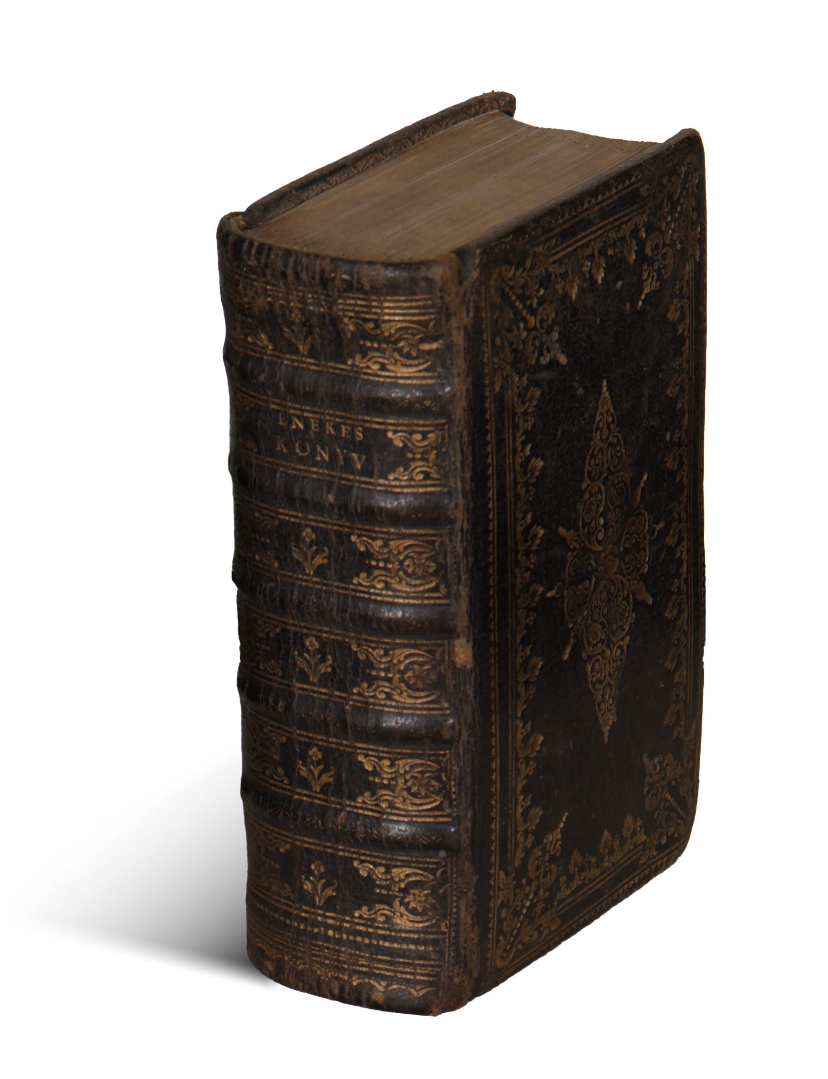 A dicséretek után Szent Dávid király zsoltárai, a végén alkalmi imádságok mutatótáblákkal. A gerinc és a táblák vaknyomásos mintái dúsan aranyozottak, a táblák éleinek belső oldalai is aranyozottak. A lapszélek poncoltak és aranyozottak. Az előzéklapok szecessziós mintás papírra lettek cserélve. Az első kötéstábla belső oldalán Vég Mária szív alakú, aranyozott, datált (1795) ex librise.  Címlapja enyhén foltos, egyébként tiszta példány. Számára készült modern vászontokban. (Központi: 160/169)
