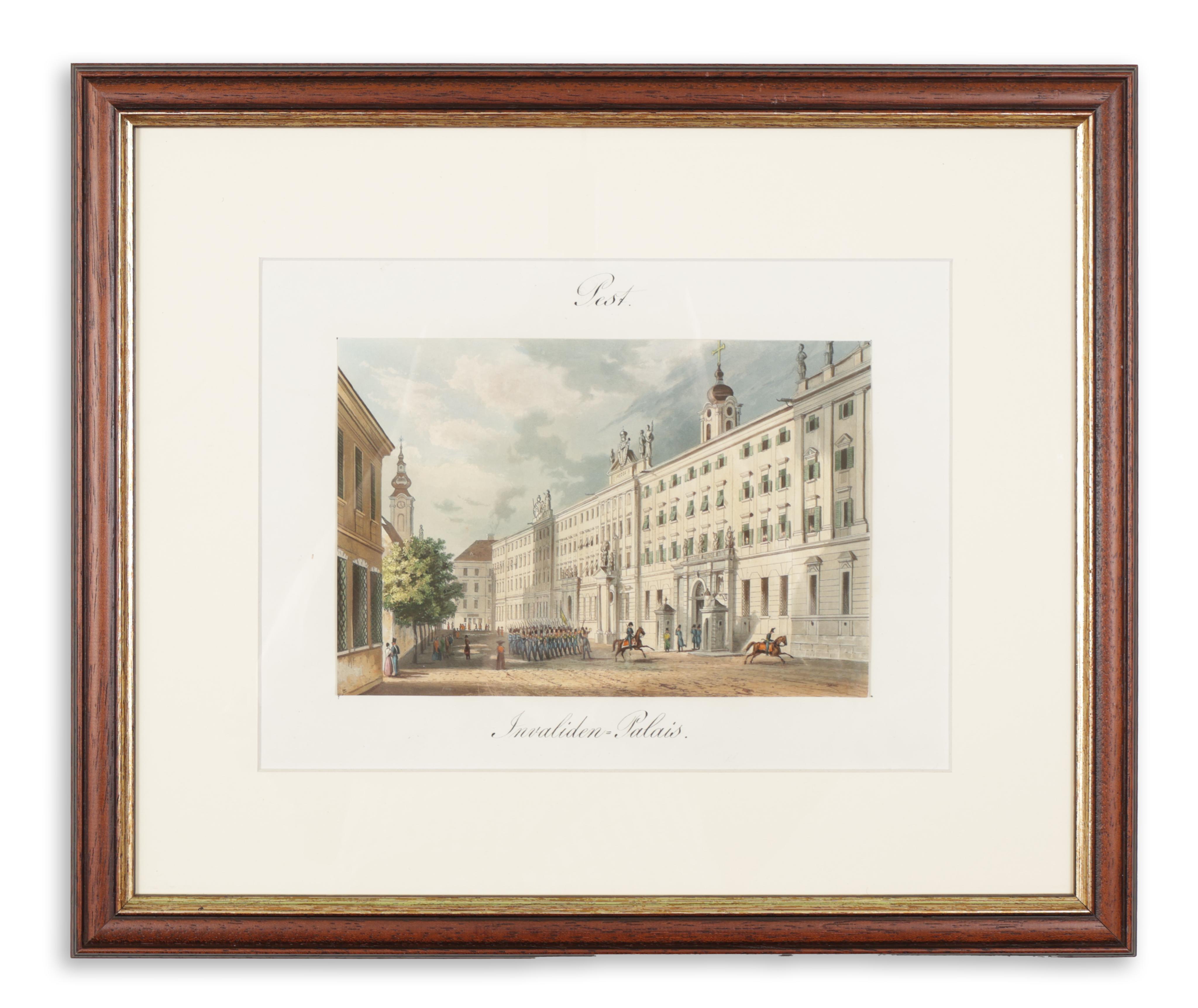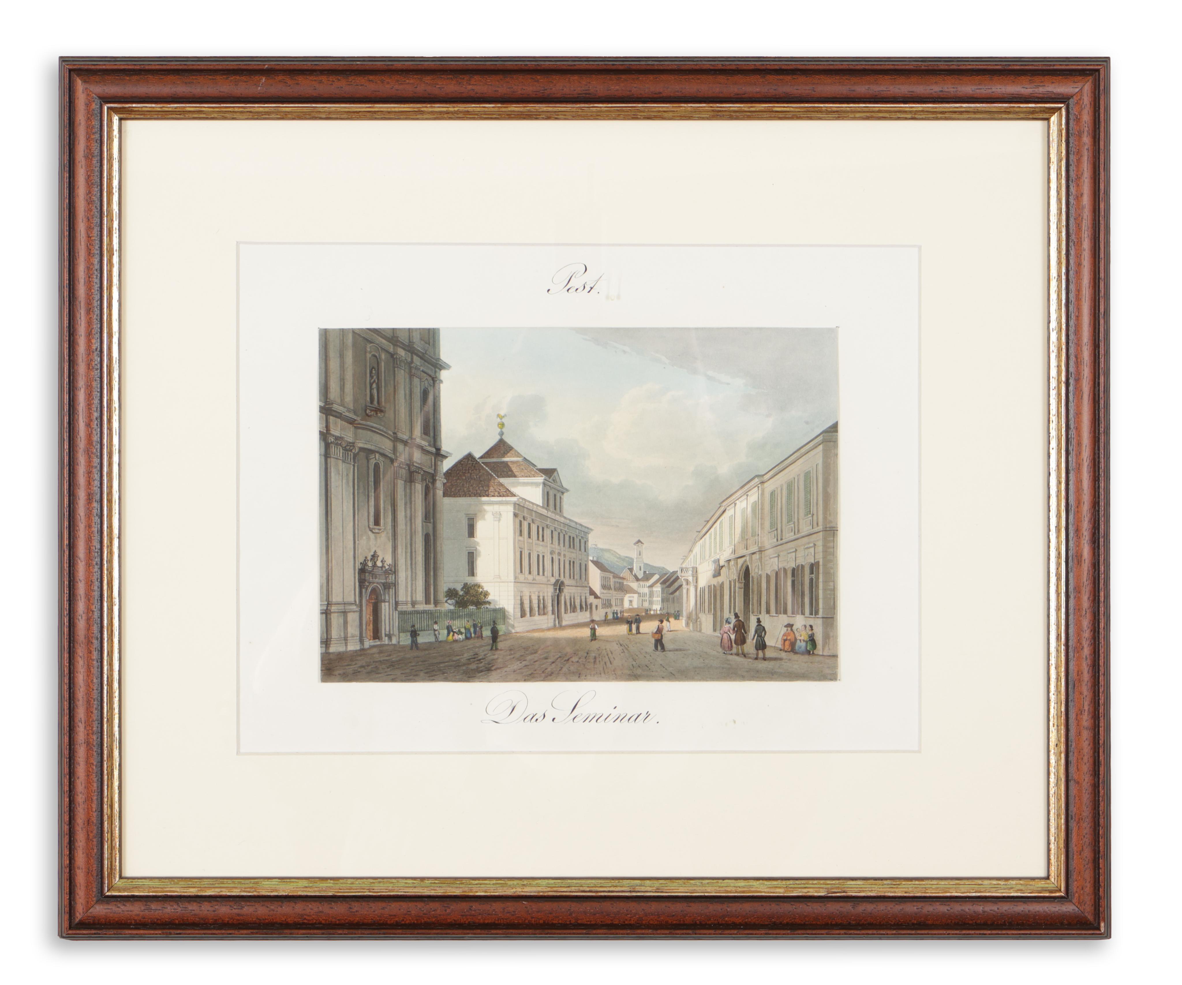 "From the 1840s onwards, depictions began to appear alongside wide-angle vedutas that reproduced smaller parts of Budapest or individual buildings [...]. Josef Kuwasseg (1802–1877), an Austrian painter who had already featured in the previous period with a few lithographed vedutas, published a six-sheet series with Vince Grimm in 1842. Martens created five aquatints from the drawings, and Hürlimann made one." (Seenger Ervin: Pest-budai látképek a tizenkilencedik századból.)