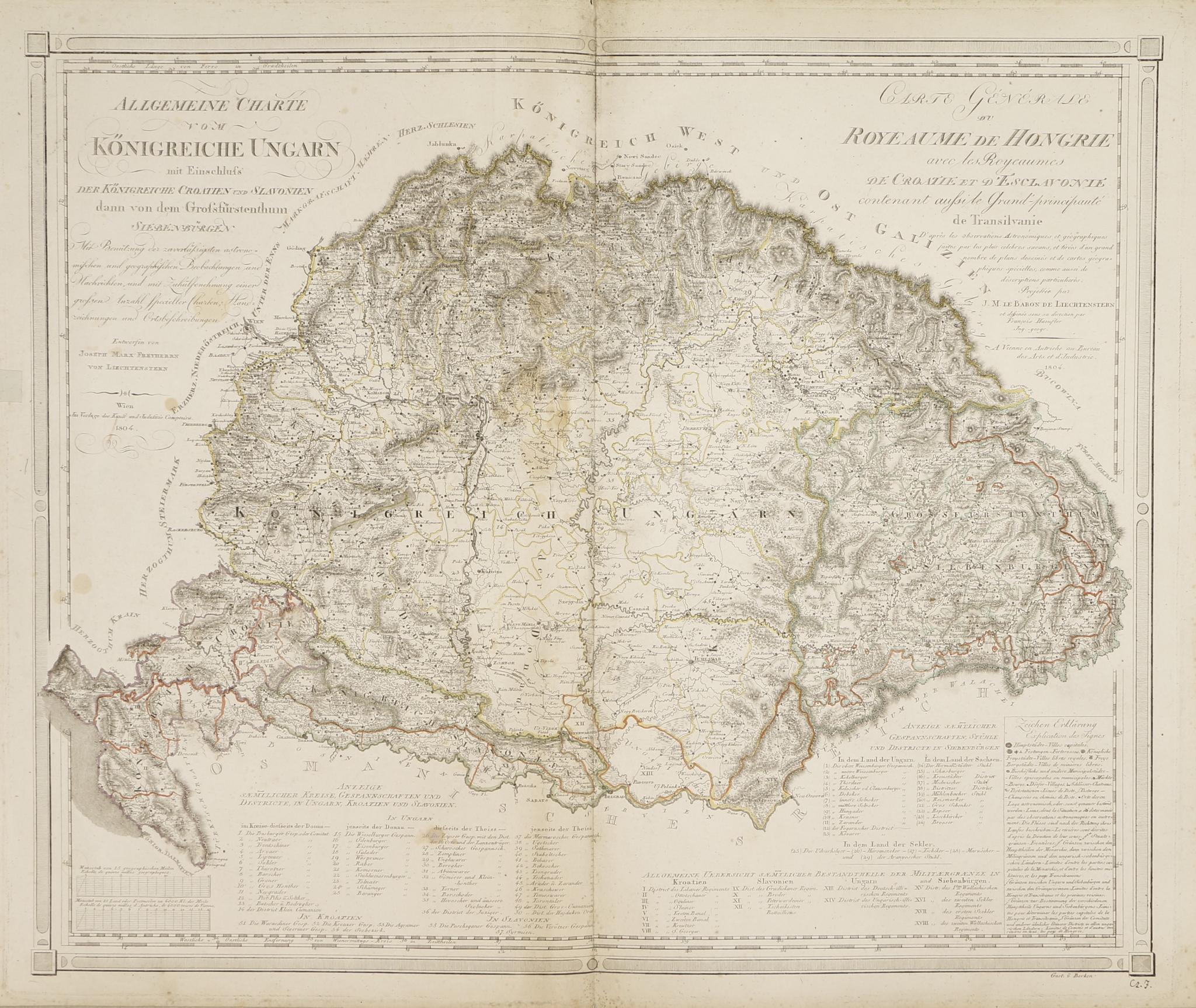 Allgemeine Charte vom Königreiche Ungarn mit Einschluss der Königreiche Croatien und Slavonien dann von dem Grossfürstenthum Siebenbürgen…