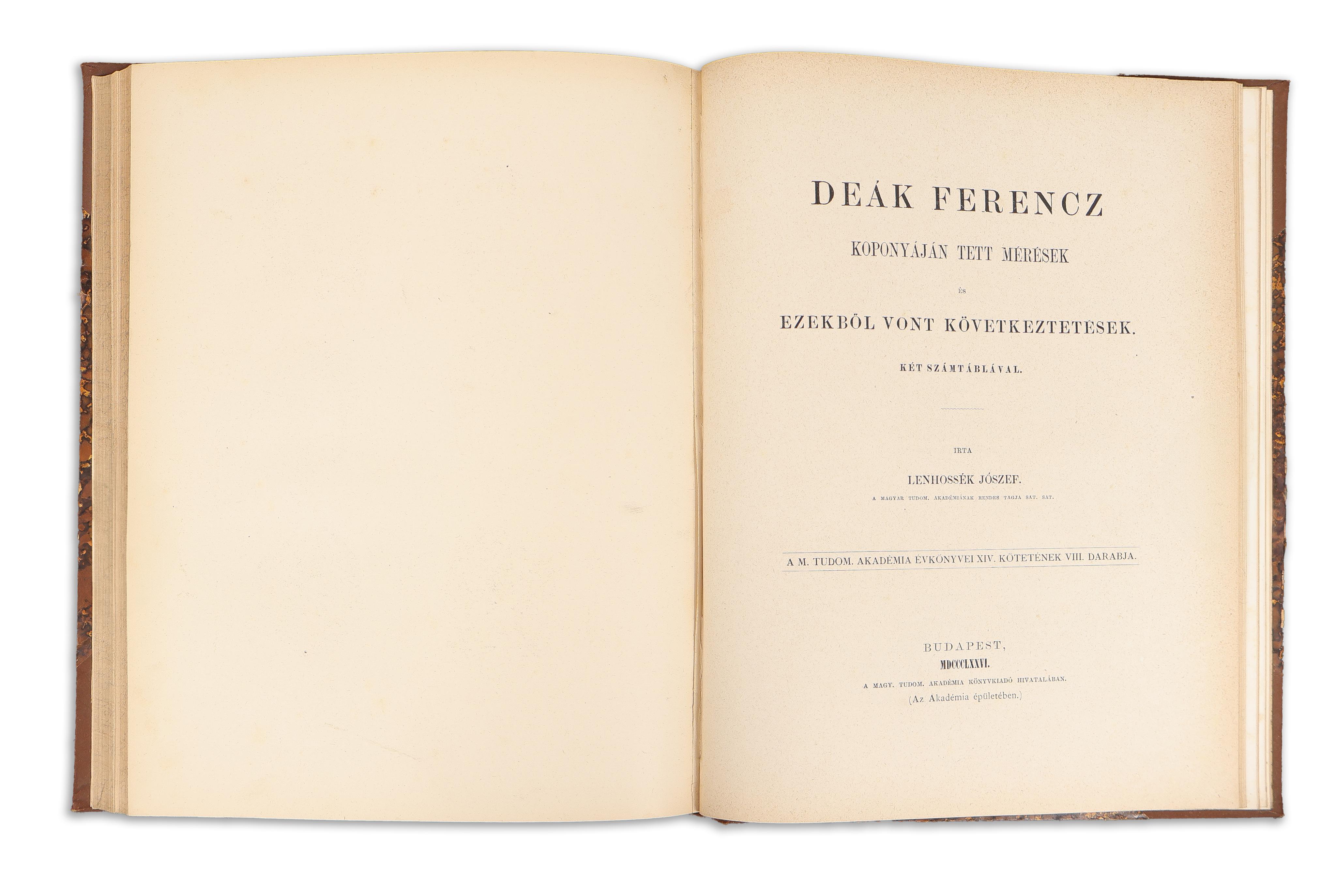 Lehossék József: Deák Ferencz koponyáján tett mérések. És ezekből vont következtetések. Két számtáblával.