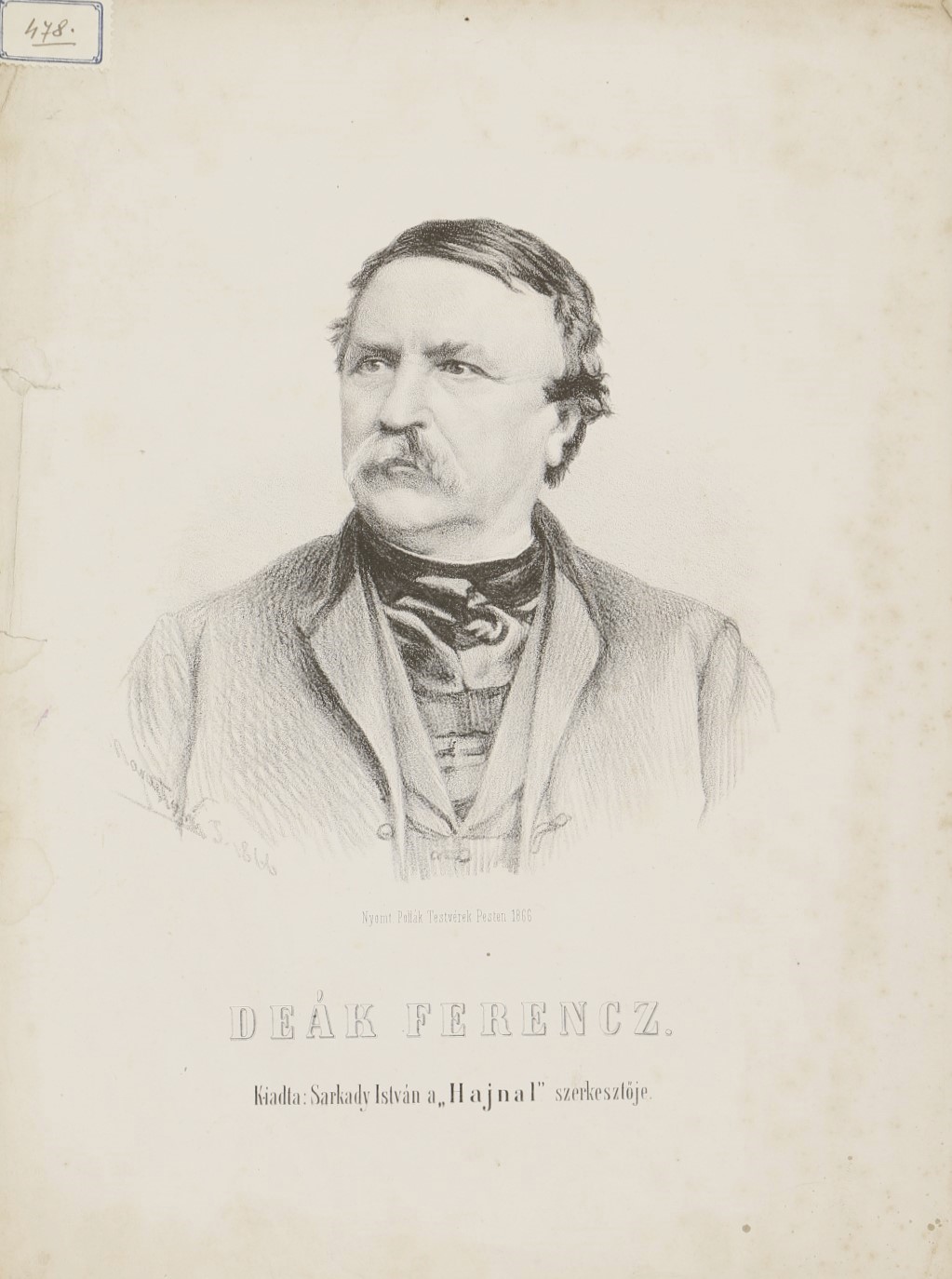 Deák Ferenc.— Marastoni J. 1866. — Nyomt. Pollák Testvérek Pesten 1866. — Kiadta Sarkady István, a „Hajnal” Szerkesztője.